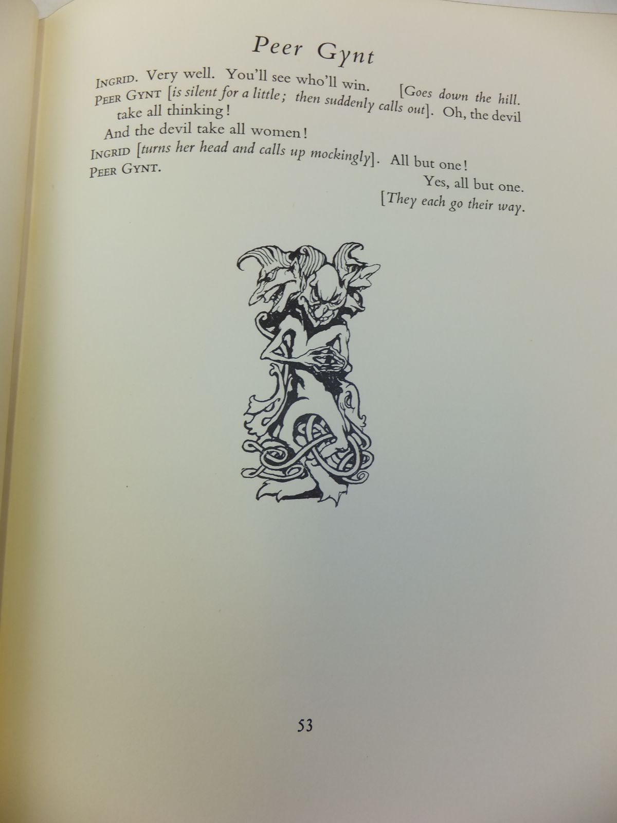 Very good condition in a almost very good dustwrapper. Peer Gynt is first and foremost a poetic fantasy, although based on a real person who lived Norway c1800. About his exploits, not much more is known than is found in Asbjornsen's book Norwegian Fairy Tales, in which Peer Gynt's chief exploits lie in the direction of fighting and conqueroring trolls. Admirably depicted by the "Goblin Master" in 12 colour plates plus b/w text illustrations. Brown cloth, gilt titles and vignette to front cover. Cream and brown pictorial endpapers. 255 pages.