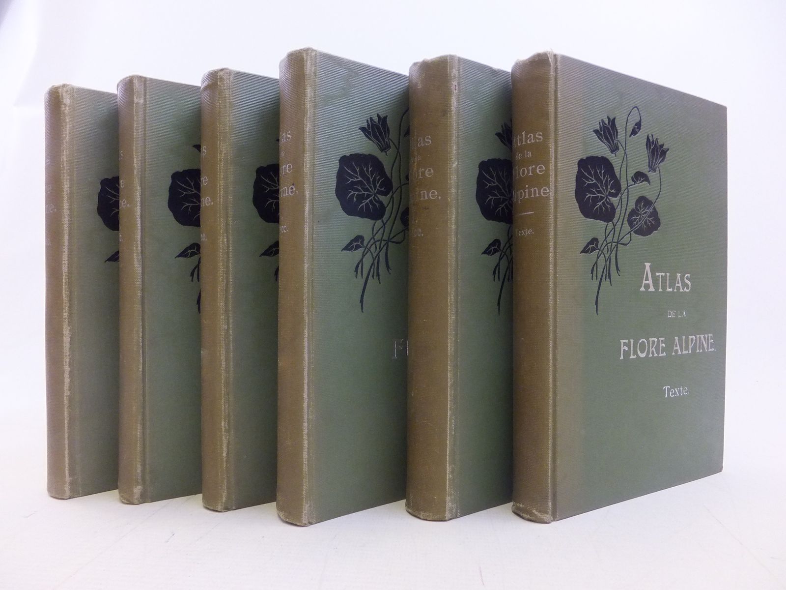 Very good condition. 6 volumes - Tomes I - V plus Texte. Green cloth boards, silver titles and black vignettes. 500 Colour plates. Text in FRENCH.