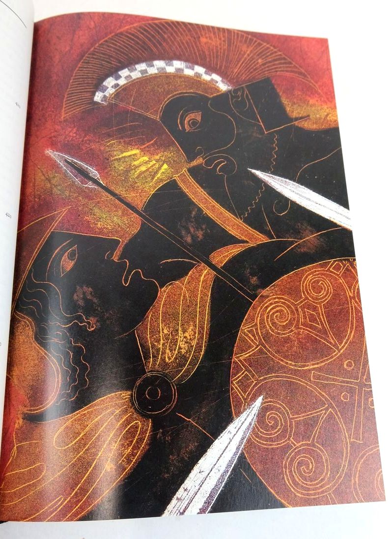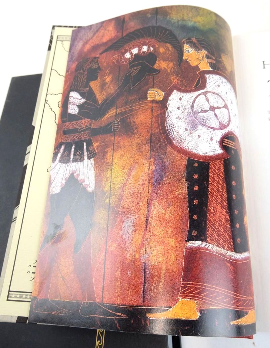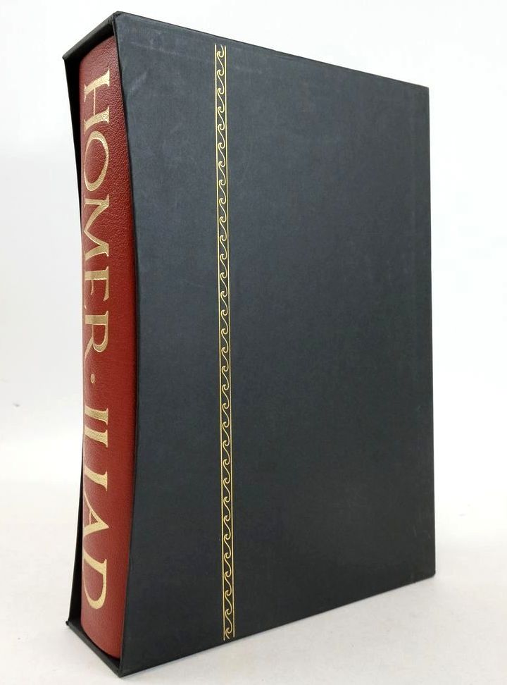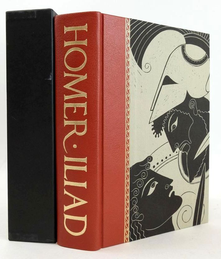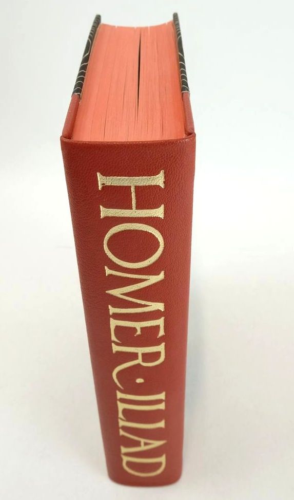 Slightly better than very good condition. Robert Fagles' translation of The Iliad. Introduction and notes by Knox. Brick red leather spine with gilt title, beige cloth boards with blocked design. Colour plates. Top edge red. lxxxv and 596 pages.