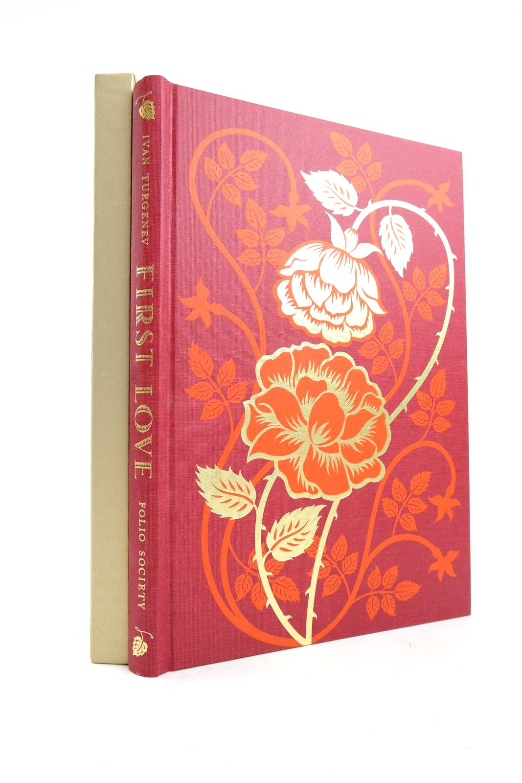 The merest hint of rubbing to lower corners of book and a tiny mark at base of spine. Contained in gold slipcase which is bumped at one corner.
