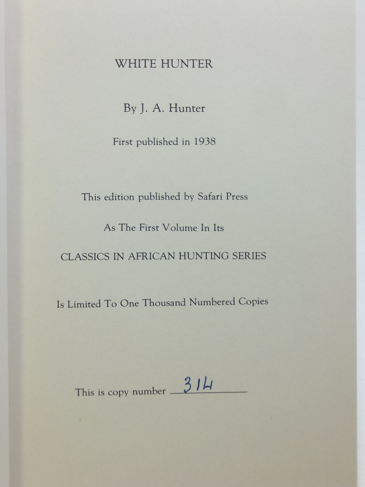 Nearly fine condition. American edition. Black and white 'pattered' covers with black titles. B/w photos. This is the Safari edition, As the First Volume In Its 'Classics in African Hunting Series'. Limited edition to 1000 numbered copies.