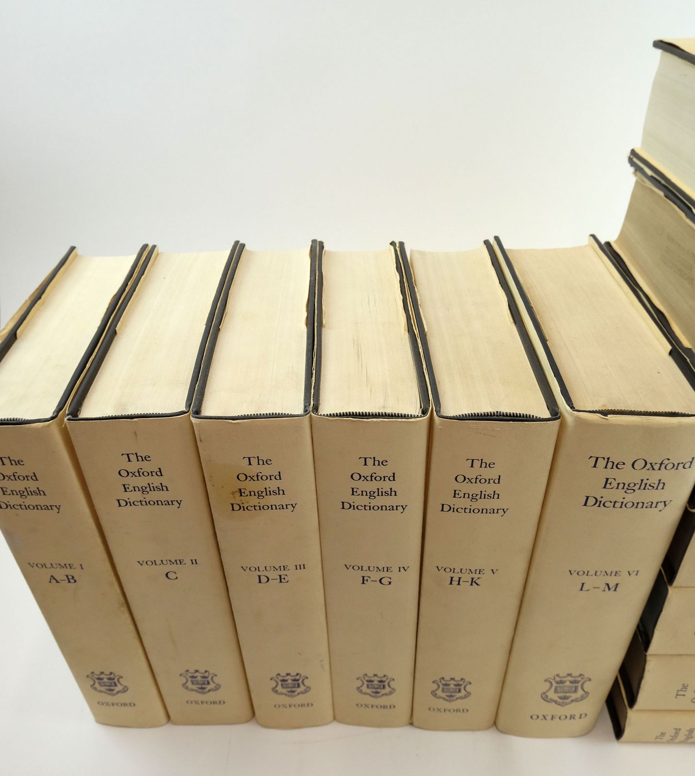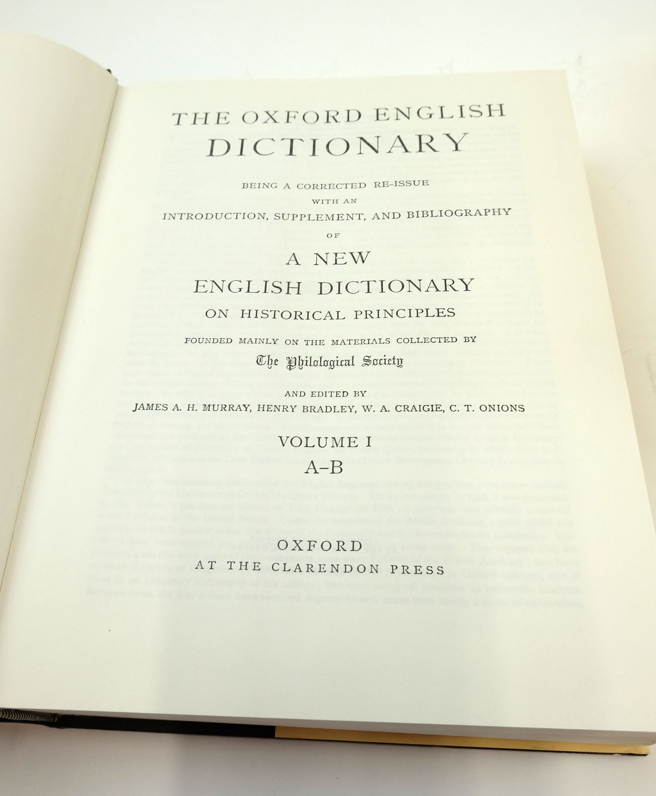 Very good condition in a very good dustwrapper. 12 Volumes (complete) plus supplement (13 volumes in total). Being a corrected re-issue with an introduction, supplement and bibliography of a New English Dictionary on Historical Principles founded mainly on the materials collected by The Philosophical Society and edited by Murray, Bradley, Craigie & Onions. Blue cloth. Large format. VERY HEAVY set.