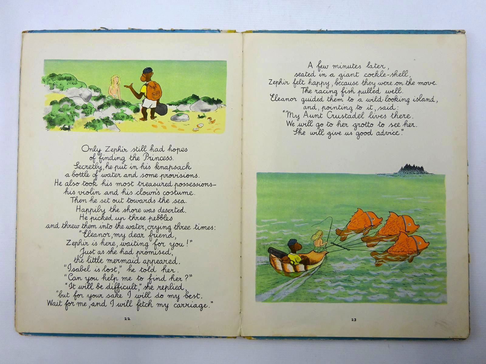 Good condition. Yellow cloth spine, blue pictorial boards. Colour illustrations throughout. Large format