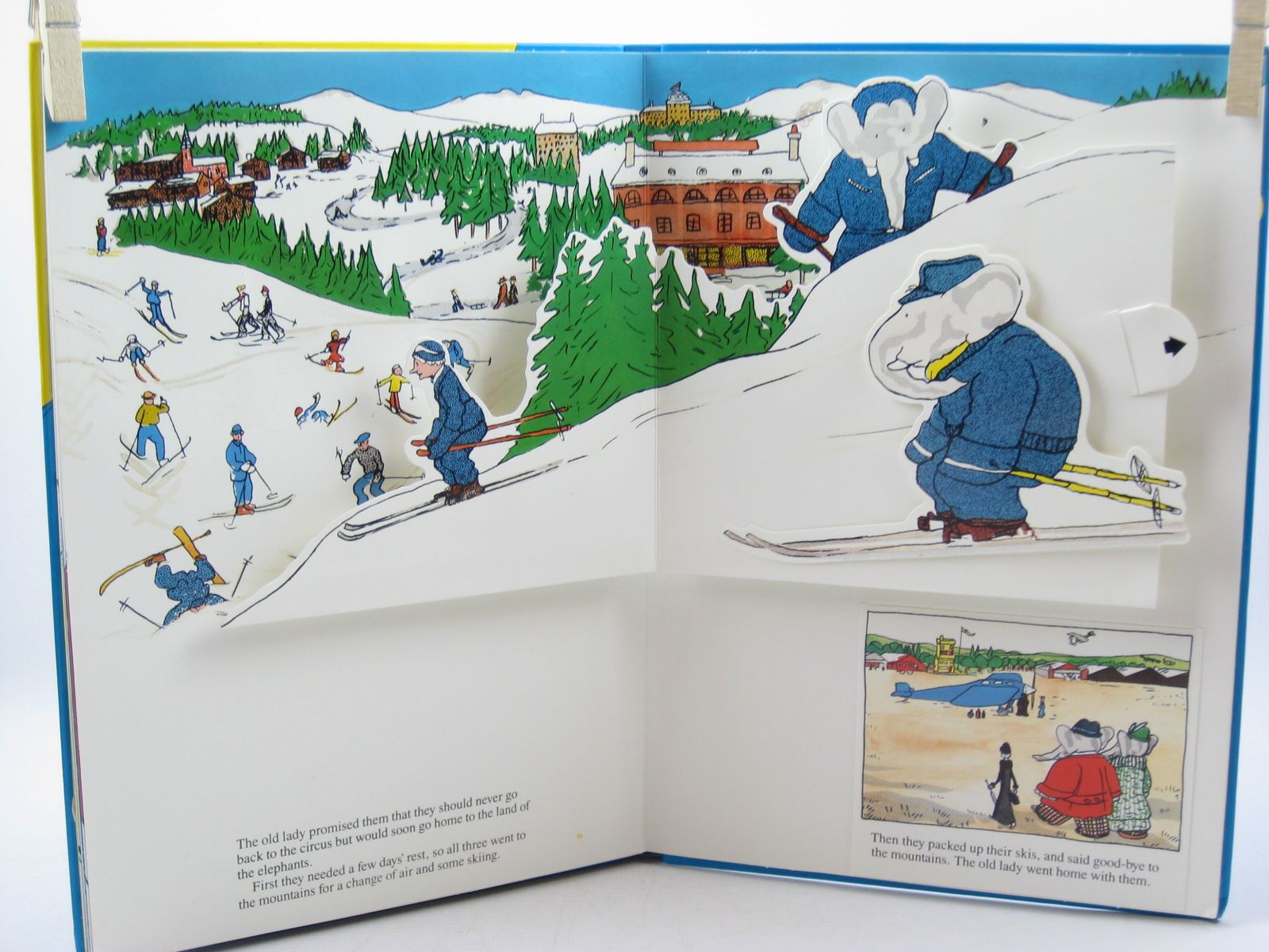 Very good condition. Babar the elephant and his wife fly off in a yellow balloon for their honeymoon... Blue pictorial glazed boards. Paper engineering by Tor Lokvig.