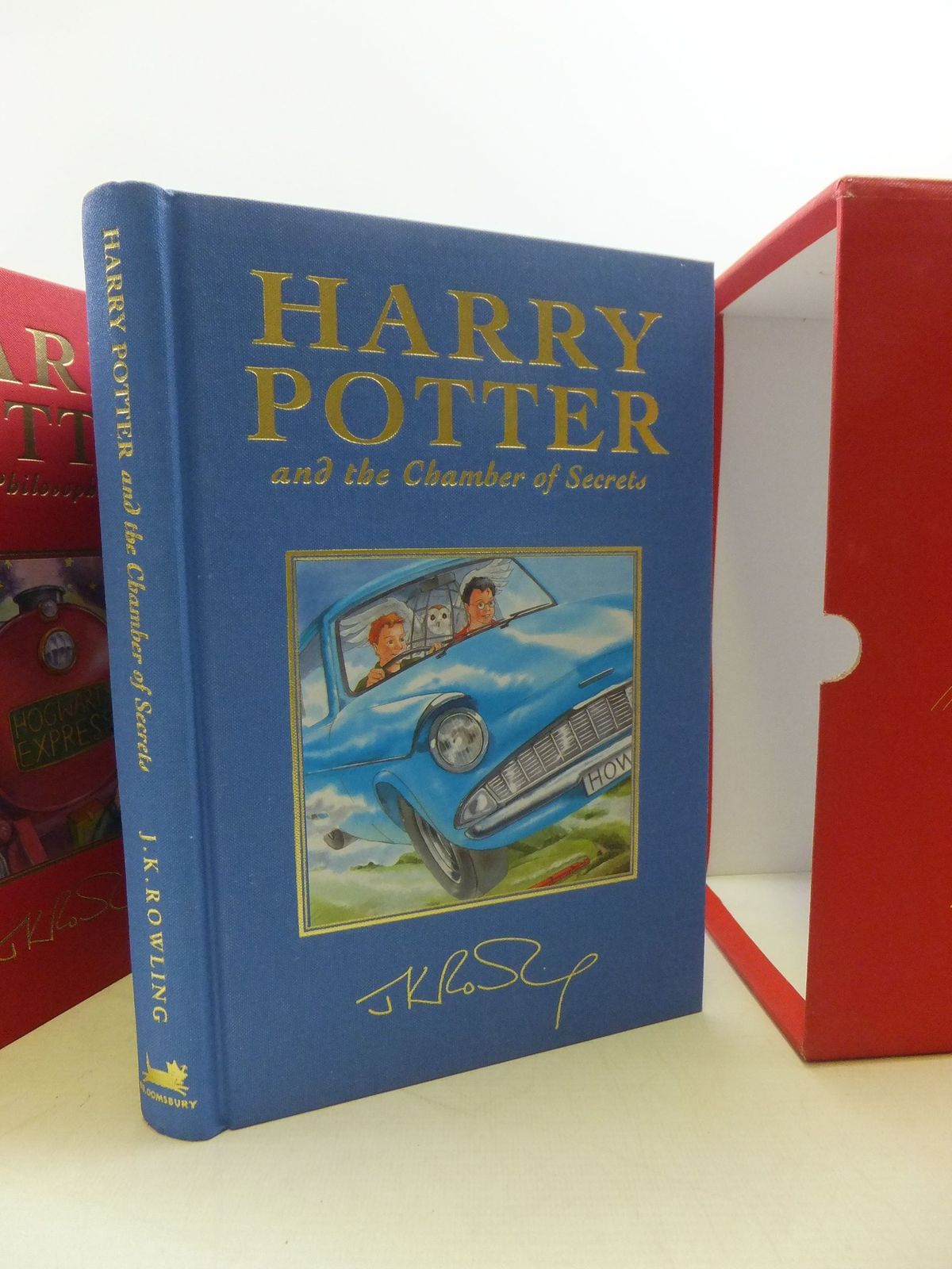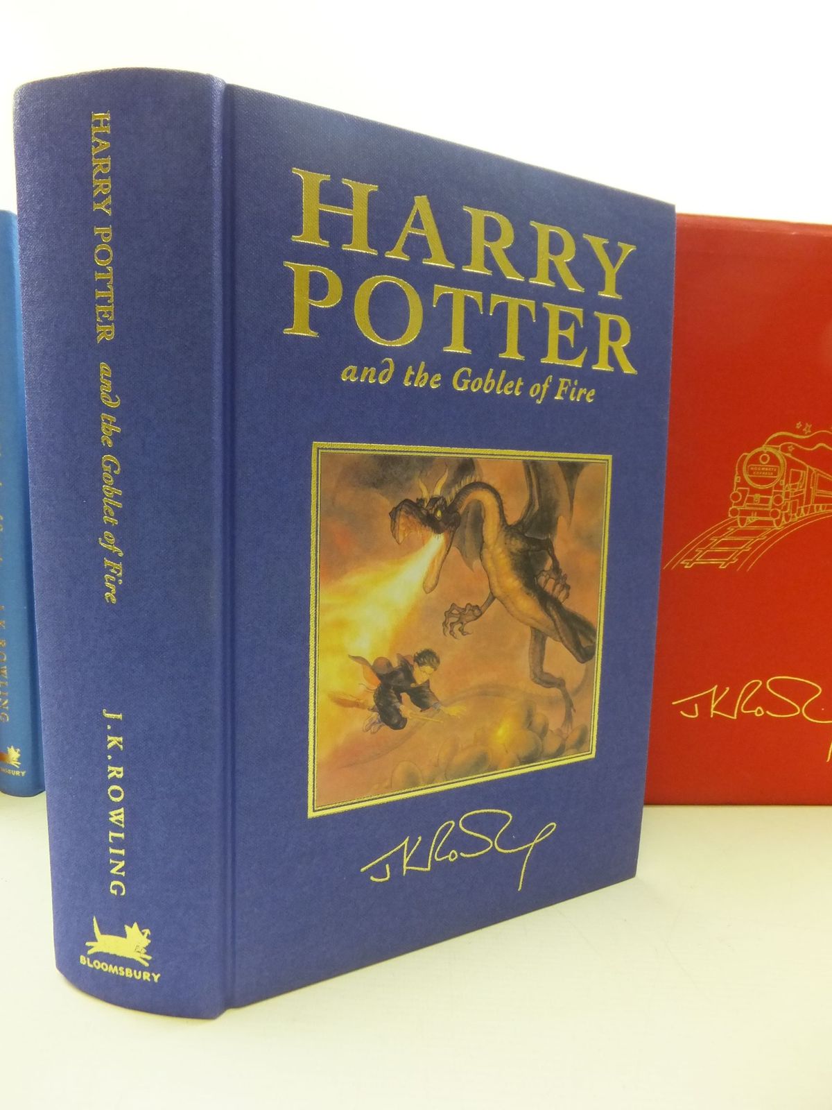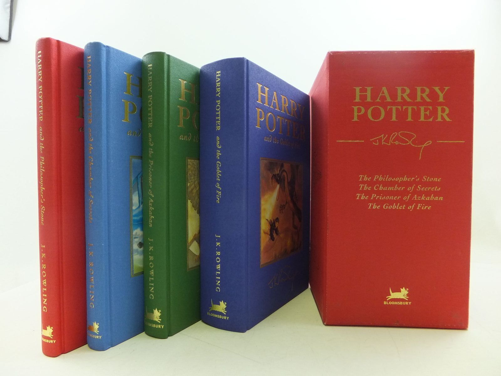 Fine condition. Contains: Philosopher's Stone; Chamber of Secrets; Prisoner of Azkaban and The Goblet of Fire. All different colour cloths, with gilt titles and pictorial onlays to covers. Contained in red slip-case with gilt titles.