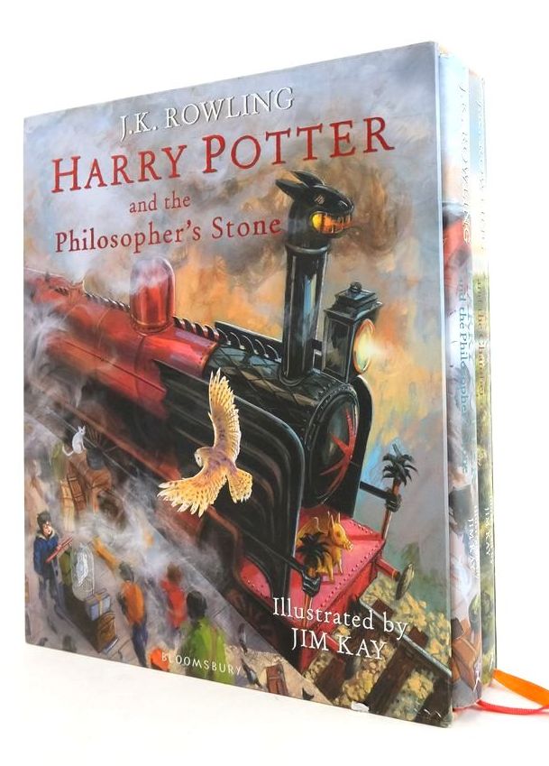 Nearly fine condition in a nearly fine dustwrapper. Illustrated edition of Harry Potter and the Philosopher's Stone and also Harry Potter and the Chamber of Secrets. Boxed set with glorious illustrations by Kim Kay, winner of Kate Greenaway Medal. Large format and heavy. Colour illustrations throughout both volumes.
