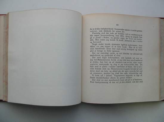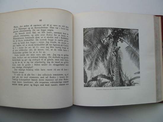 Very good condition. Modern binding with 3/4 marbled and red leather spine and corners. B/w photographs. Text in Danish.