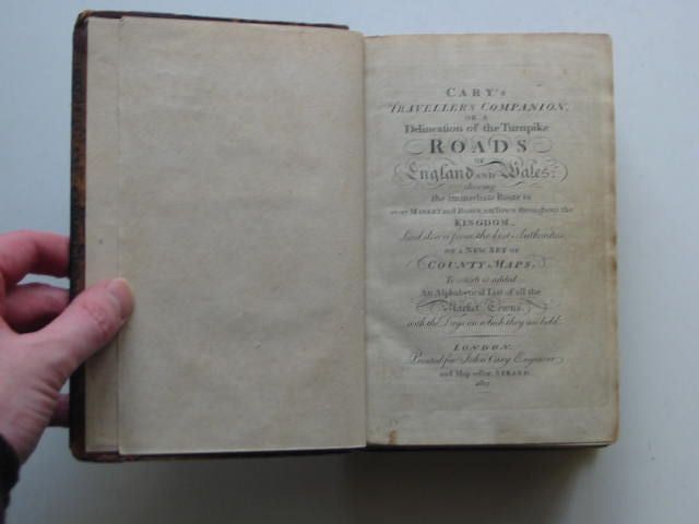 Very good condition. Contains Cary's Traveller's Companion or a Delineation of the Turnpike Roads of England and Wales. With coloured map of England/Wales and 42 coloured county maps including a large folding map of Yorkshire. Bound with Cary's New Itinerary or An Accurate Delineation of the Great Roads, Both Direct and Cross, Throughout England and Wales With Many of the Principle Roads in Scotland. 6 folding colour maps. Includes index to the Direct Roads From London, Principle Places that Occur in the Crossroads, List of Inns from which Stagecoaches Depart plus 950 pages. Modern brown leather spine with gilt title. Original tree calf covers.