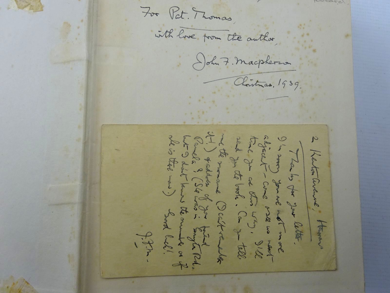 SIGNED by author, with dedication to a previous owner to front endpaper. Also includes a hand written postcard from the author to the same previous owner. Chipping along bottom of spine; some fraying/loss to cloth. Bumping to corners. A few marks to covers. Some foxing. What look like browned glue marks to pastedowns. All plates present.