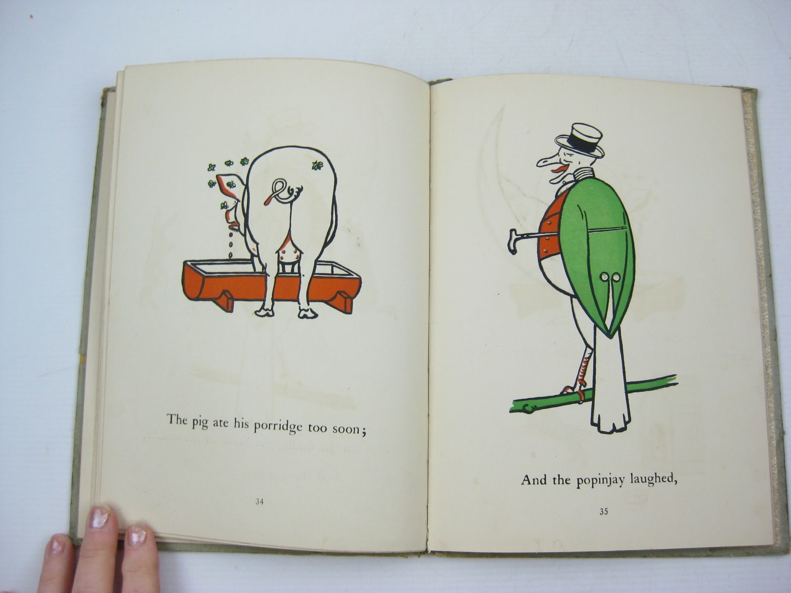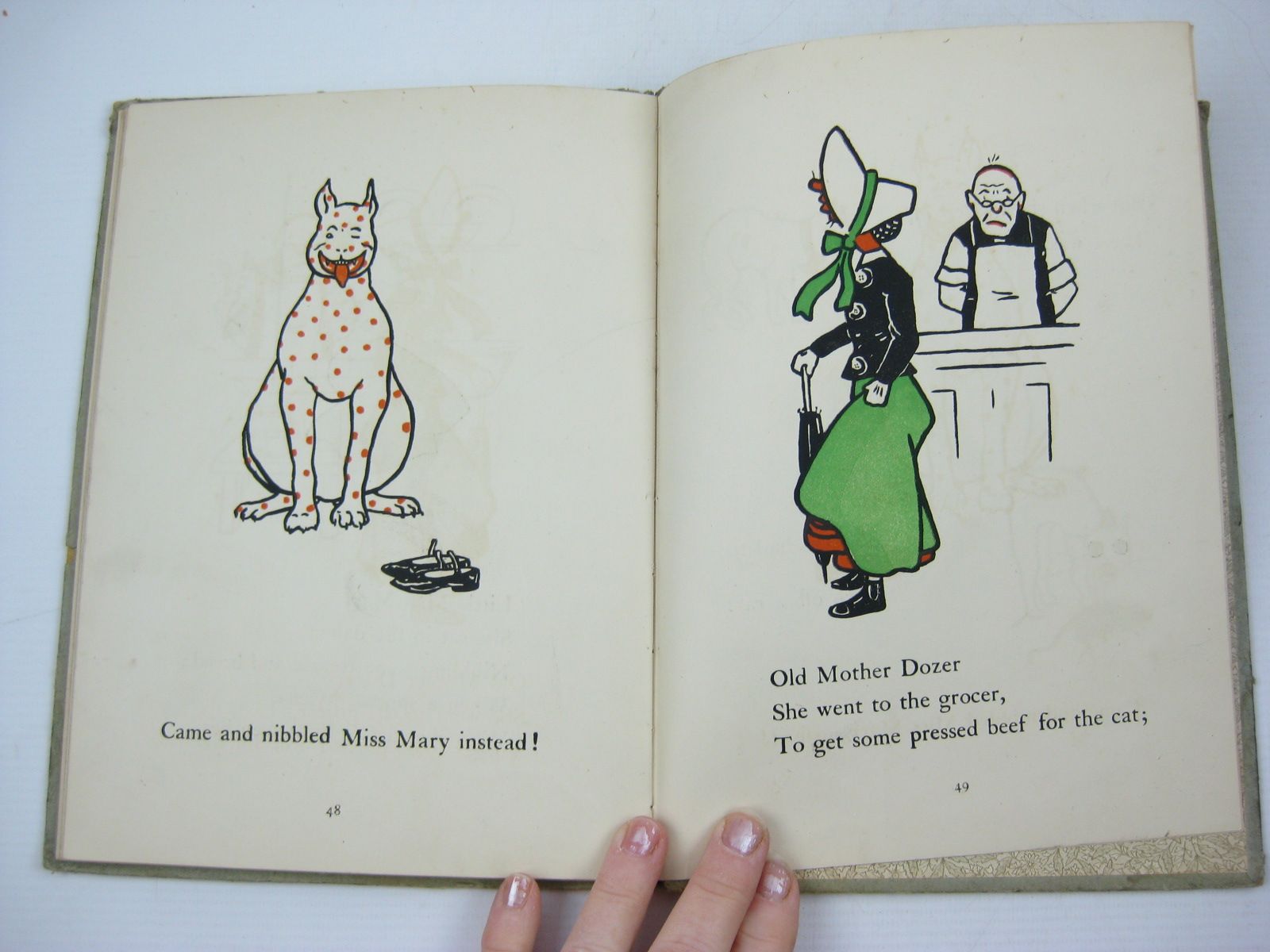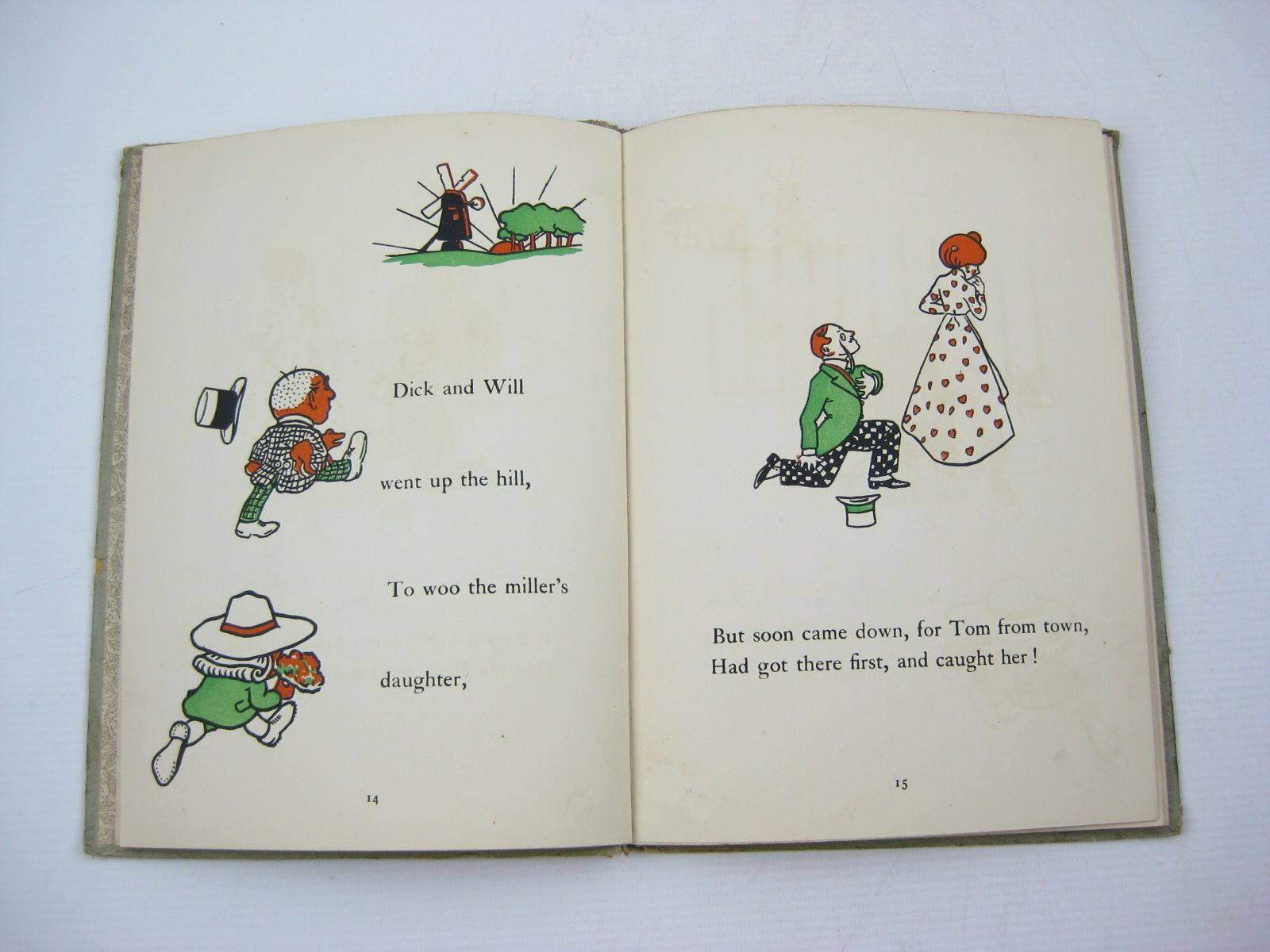 Good condition. Pale blue boards with black title orange/green vignette to front cover. Floral decorated endpapers. 52 pages. Colour illustrations throughout with adapted rhymes below. 9.5" x 7".