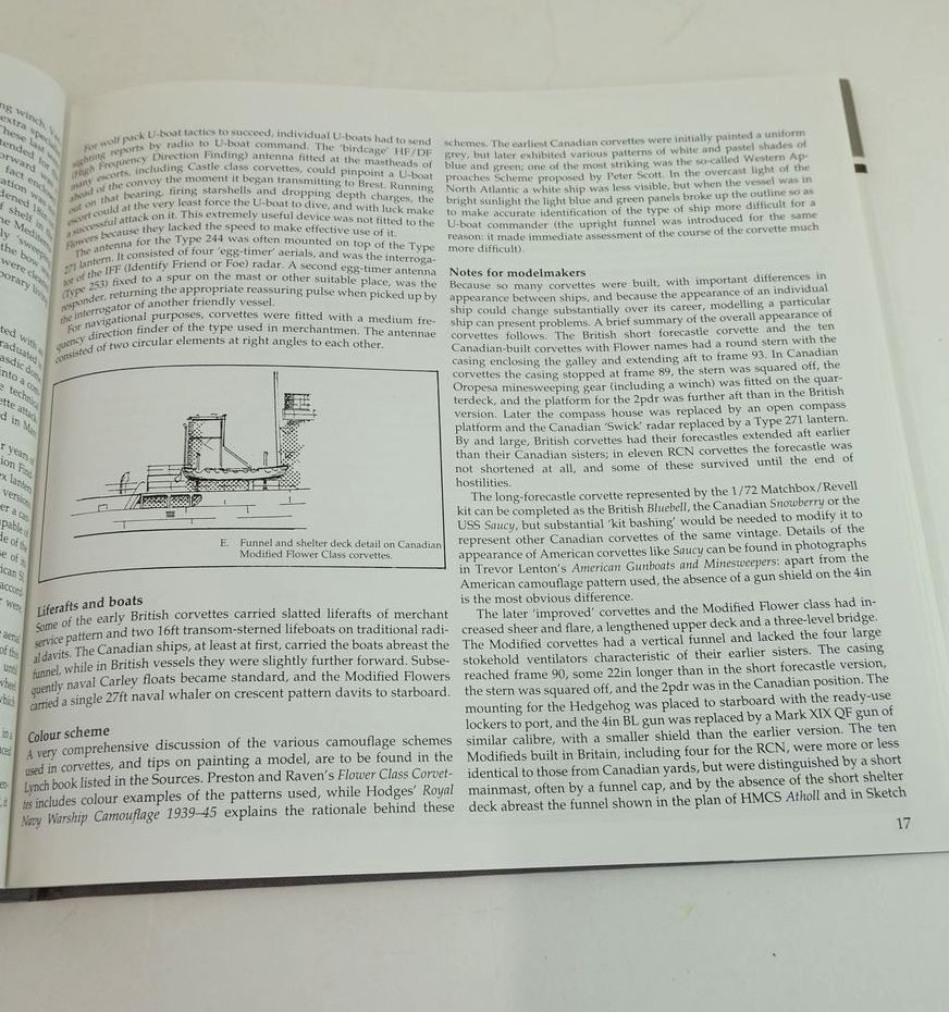 Nearly fine condition in a nearly fine dustwrapper. This volume is devoted to one of the most famous and most nuerous of all escort vessels, the 'Flower' class corvette. The particular subject is the corvette Agassiz which was build in Vancouver and commissioned in January 1941. Of the short forecastle configuration she best represents the Canadian Flowers as they were when thrown into the thick of the bitter Atlantic convoy battles of 1941-42. A complete anatomy of the ship in words, photographs and drawings. Grey cloth boards, gilt title to spine. B/w photos and drawings. 160 pages.