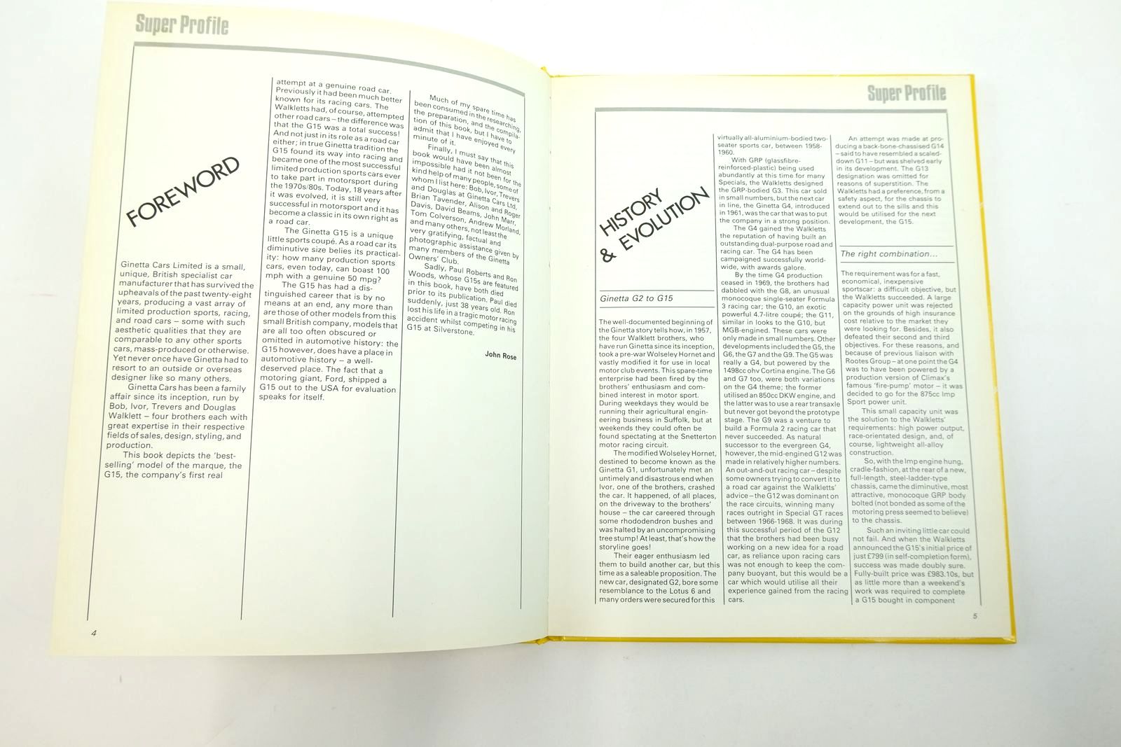 Very good condition. Ginetta Cars Limited is a small, unique, British specialist car manufacturer that has produced a vast array of limited production sports, racing, and road cars. Yellow glazed pictorial boards. Colour and b/w photos. 56 pages.