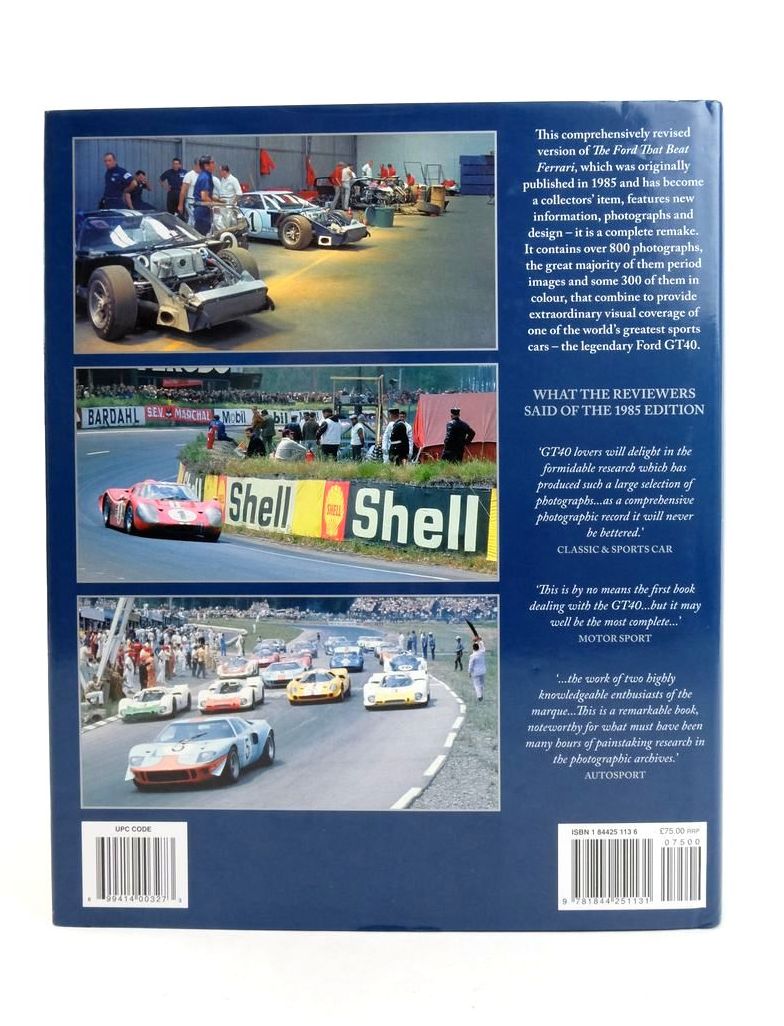 Nearly fine condition in a nearly fine dustwrapper. Large format. Colour and b/w photos. The GT40, placed 1-2-3 at Le Mans in 1966 and won the next three consecutive years.