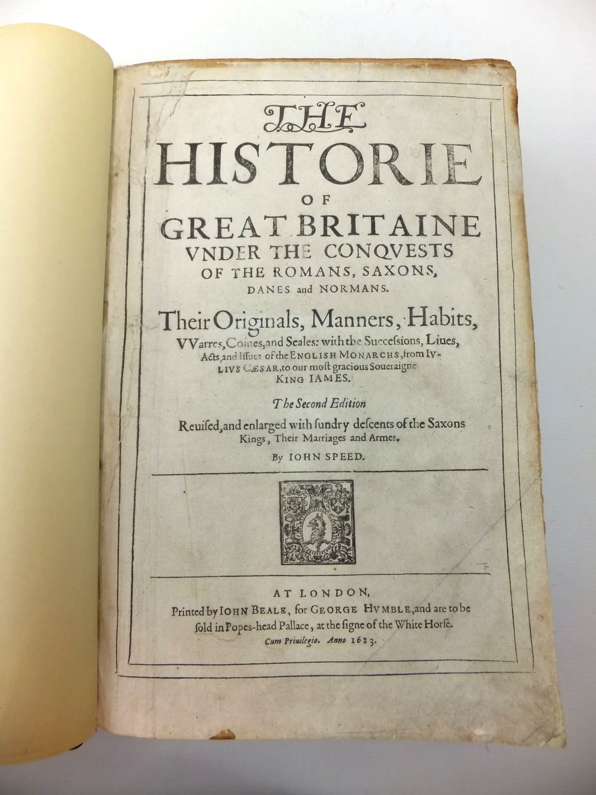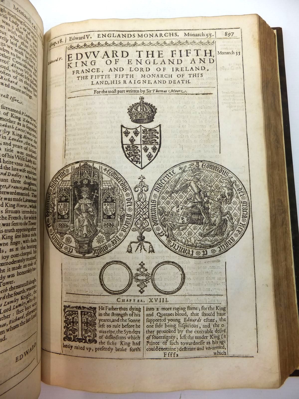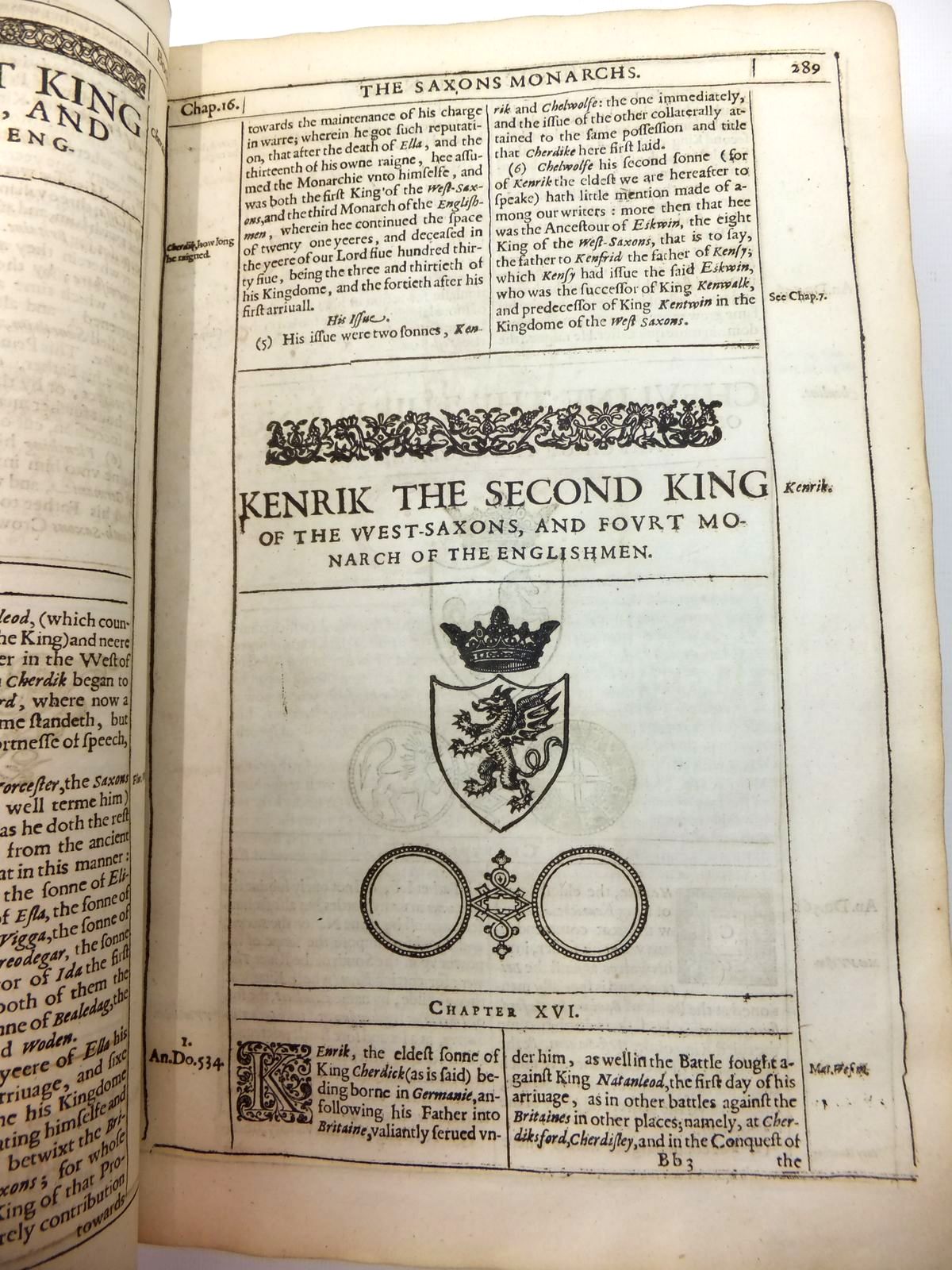 Very good condition. Their Originals, Manners, Habits, Warres, Coines and Seales: with the Successions, lives, acts etc. of the English Monarchs. Second Edition. Revised and enlarged. Contents lists 10 books; this binding contains the following: Contents, plus 8 page proeme; Books 5 - 10, plus Summary of the whole and 78 page index table. Very large format. Leather binding with raised bands to spine and black title labels and gilt titles. Contains woodcuts.