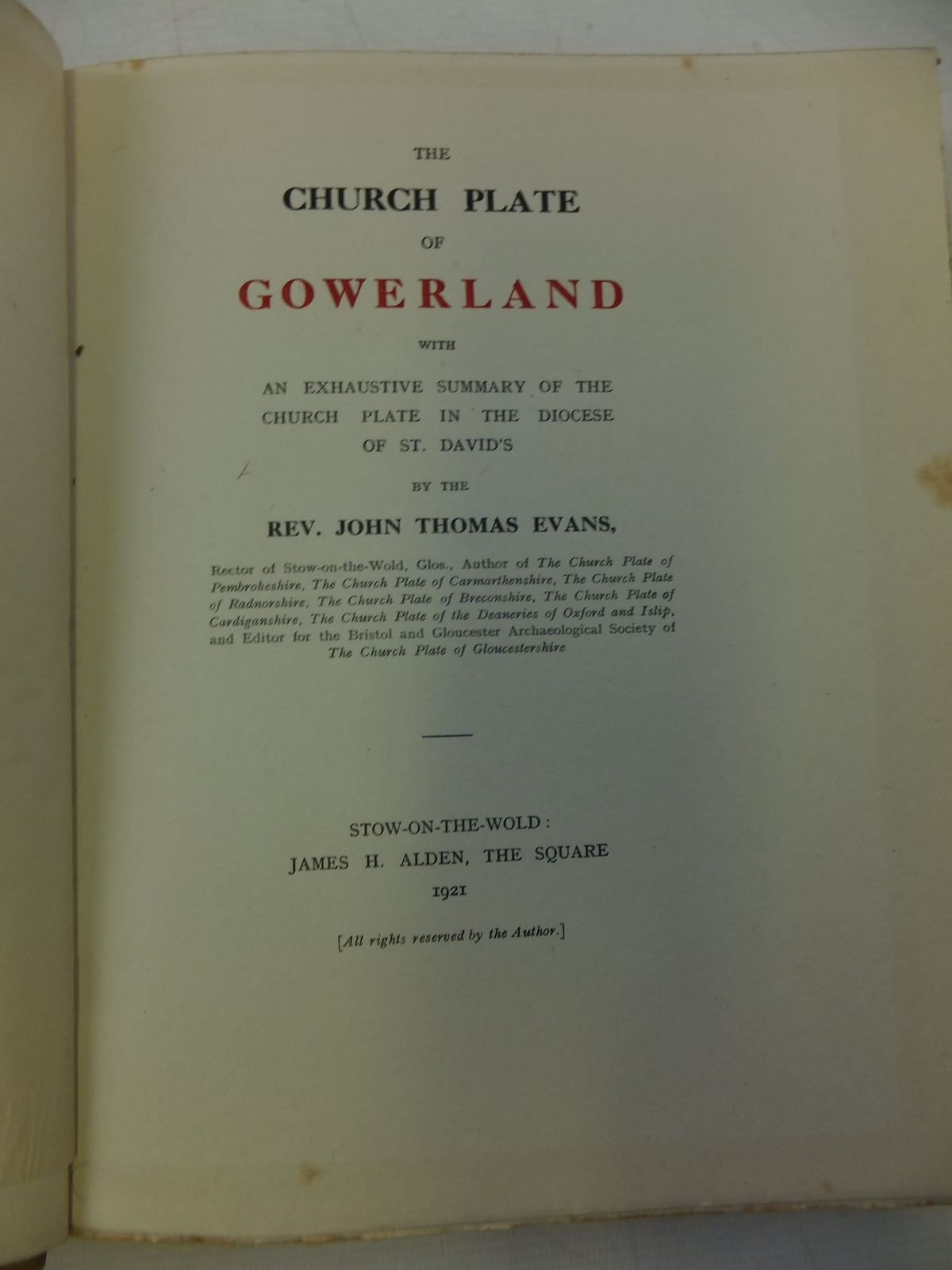 Very good condition. Large format. Light brown cloth with gilt titles. With an exhaustive summary of the church plate in the diocese of St. Davids.