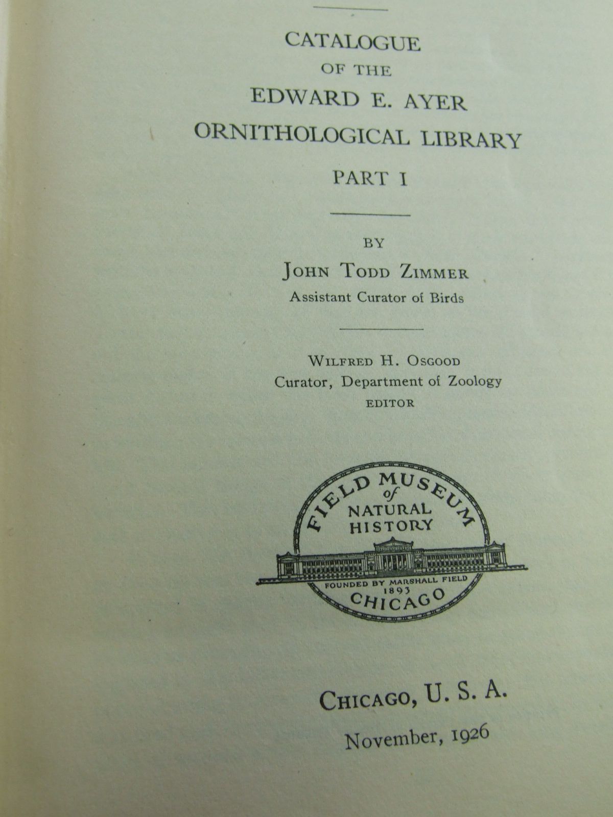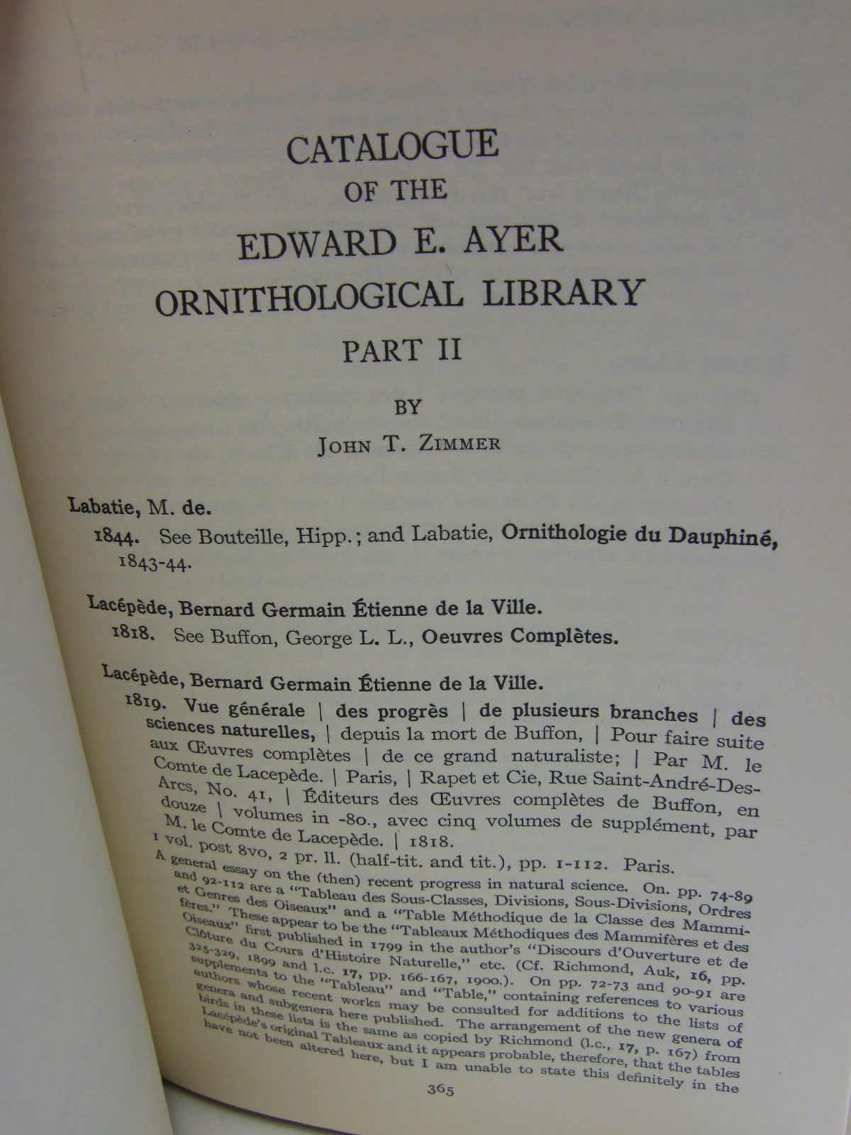 CATALOGUE OF THE EDWARD E. AYER ORNITHOLOGICAL LIBRARY