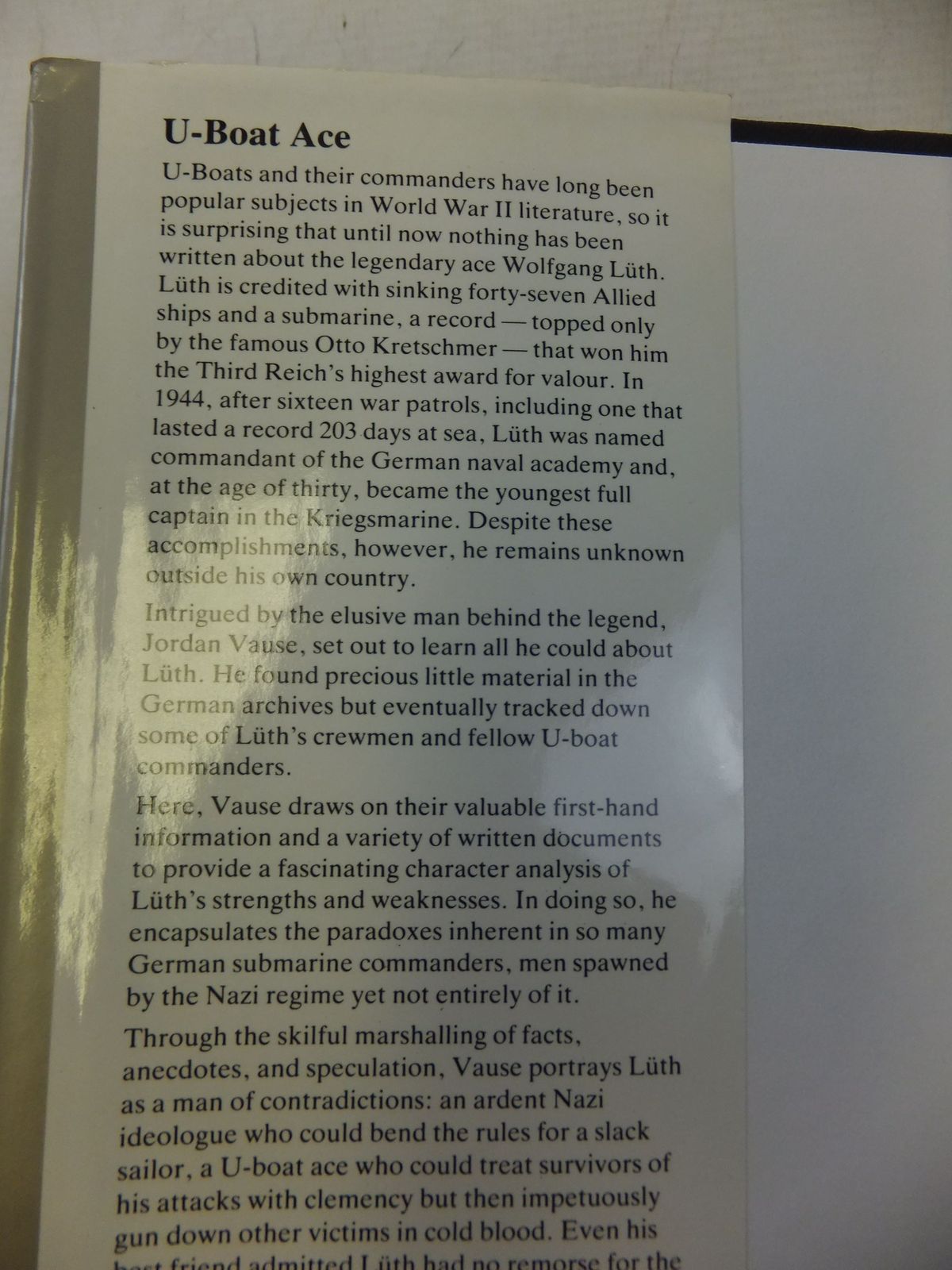 Fine condition in a nearly fine dustwrapper. Wolfgang Luth is credited with sinking 47 allied ships and a submarine. 235 pages.