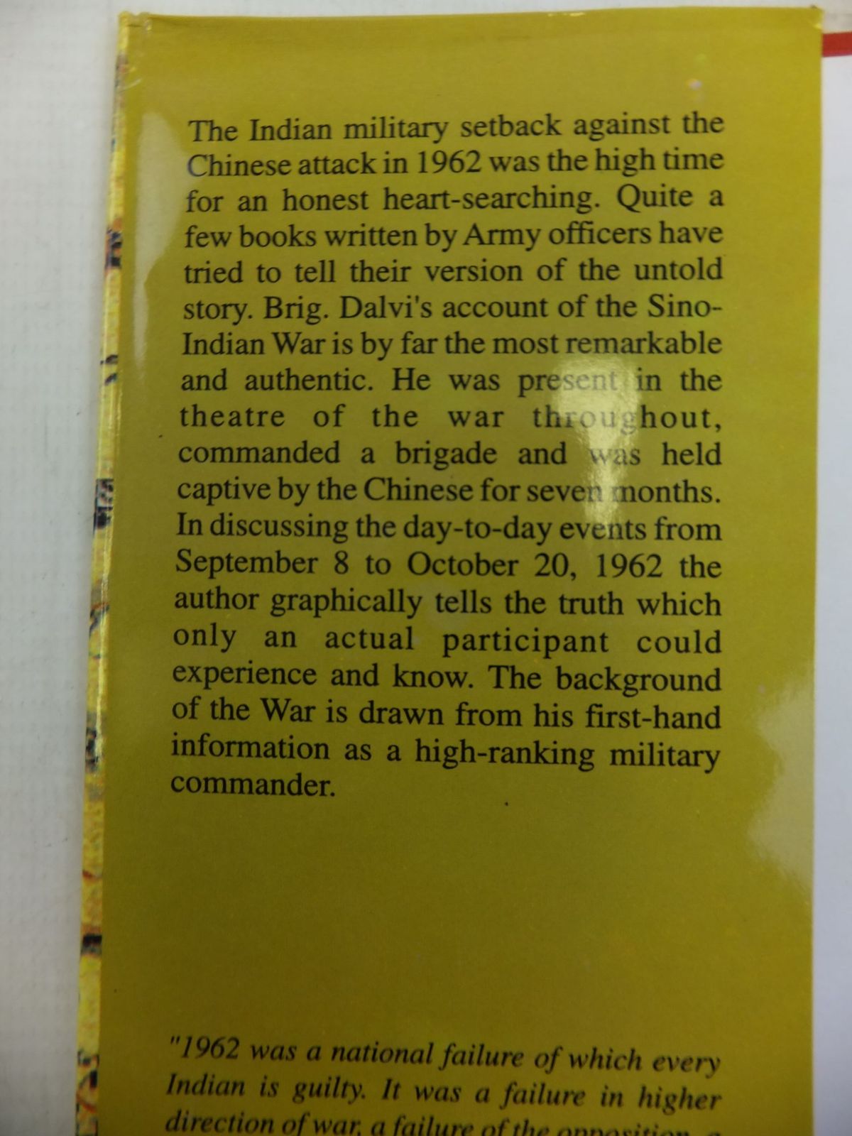 Very good condition in a very good dustwrapper. The angry truth about India's most crushing military disaster. Red cloth, gilt title to spine. B/w photos and maps. Fold-out colour map to rear.