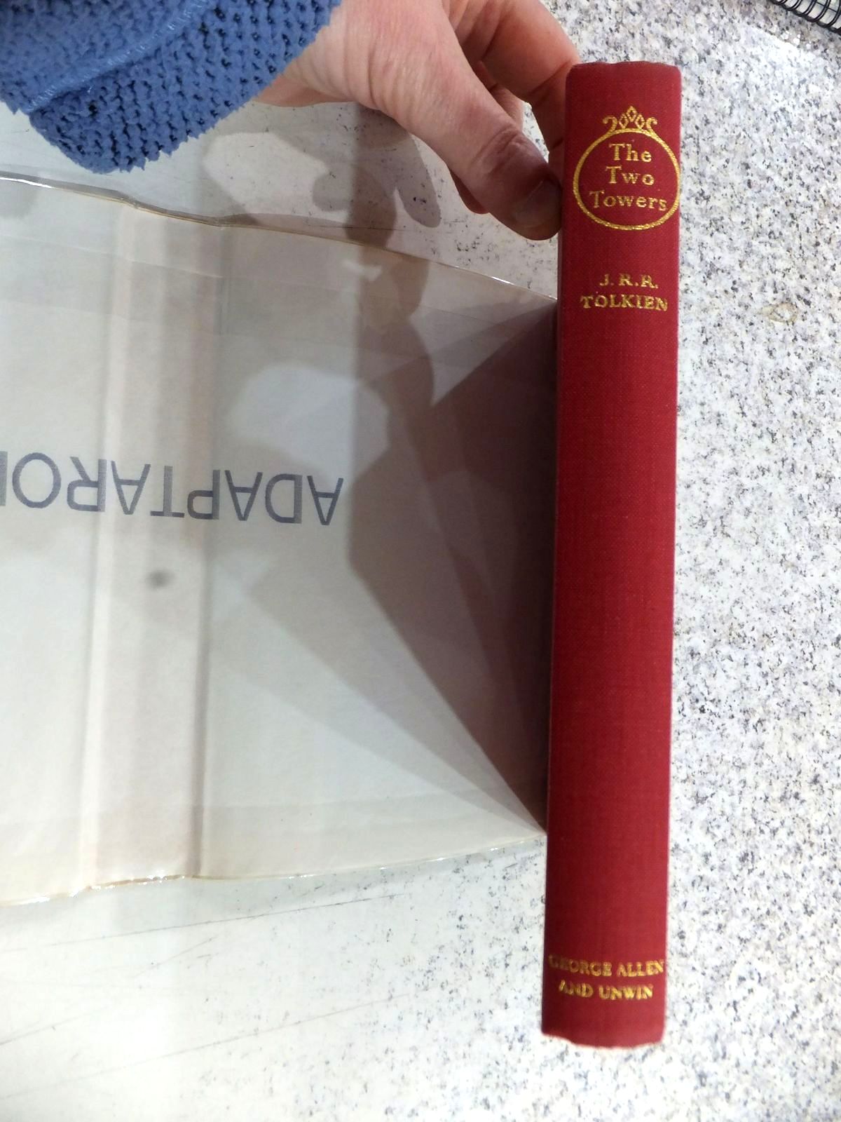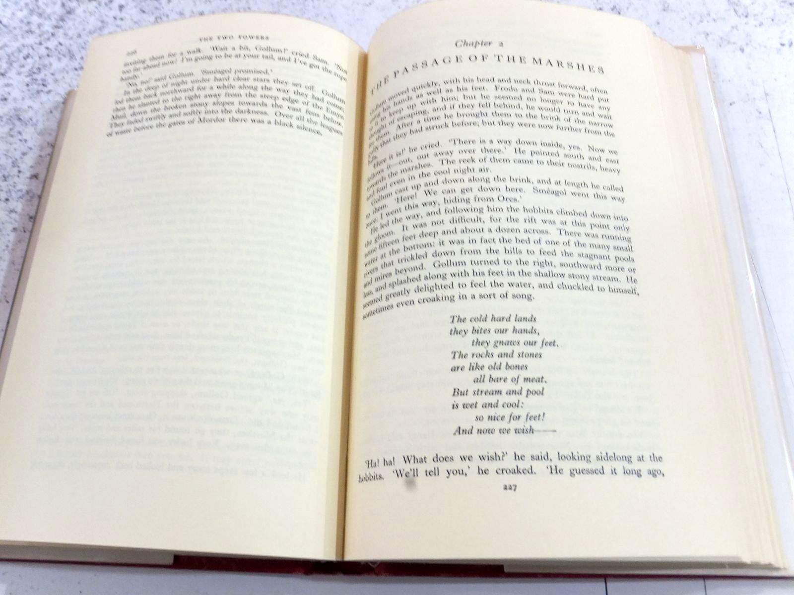Slightly better than very good condition in a very good dustwrapper. Being The Second Part of The Lord of the Rings Trilogy. Second Edition Revised. Red cloth, gilt title to spine and folding map to rear. 352 pages.