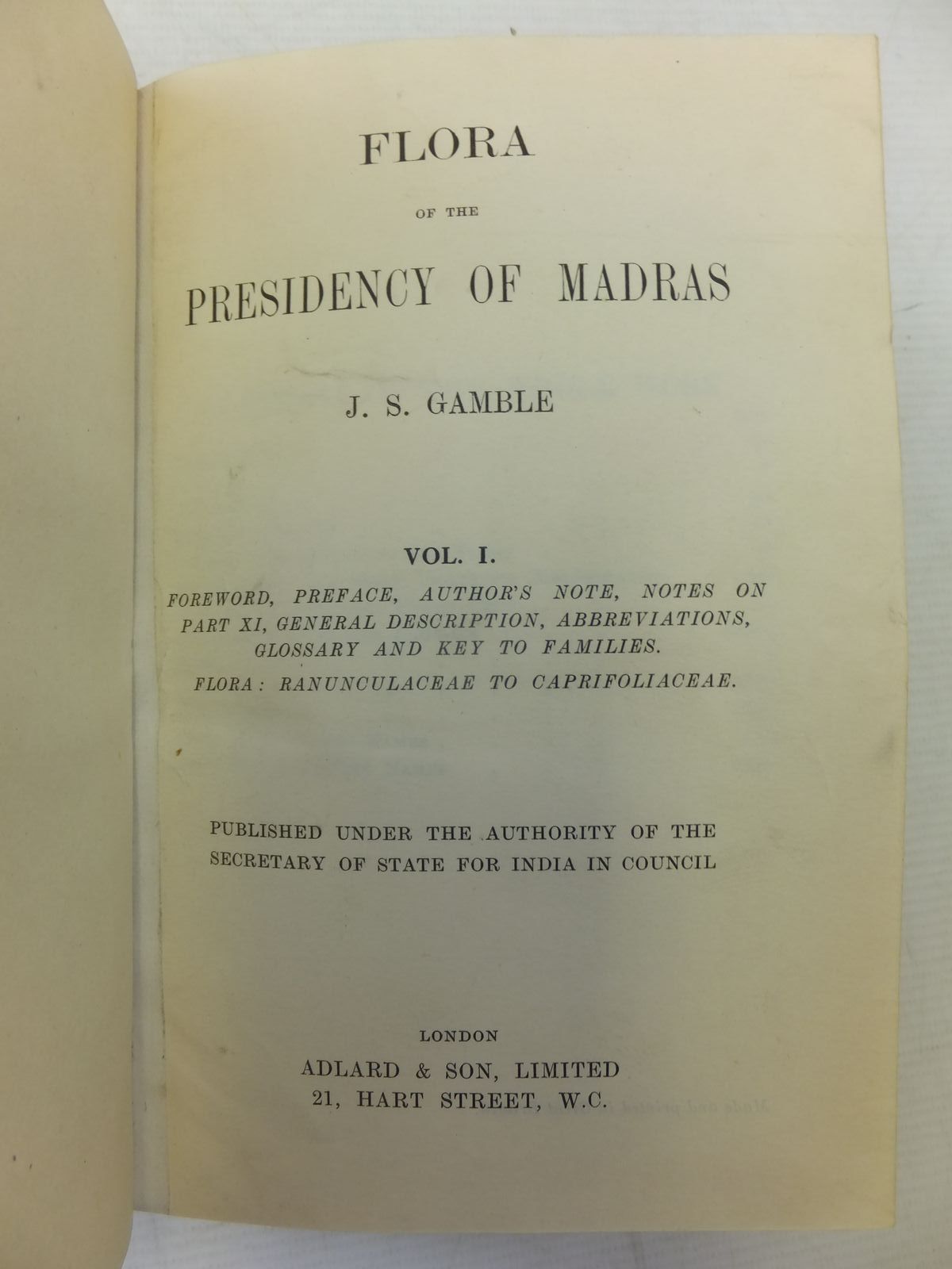 FLORA OF THE PRESIDENCY OF MADRAS (3 VOLUMES)