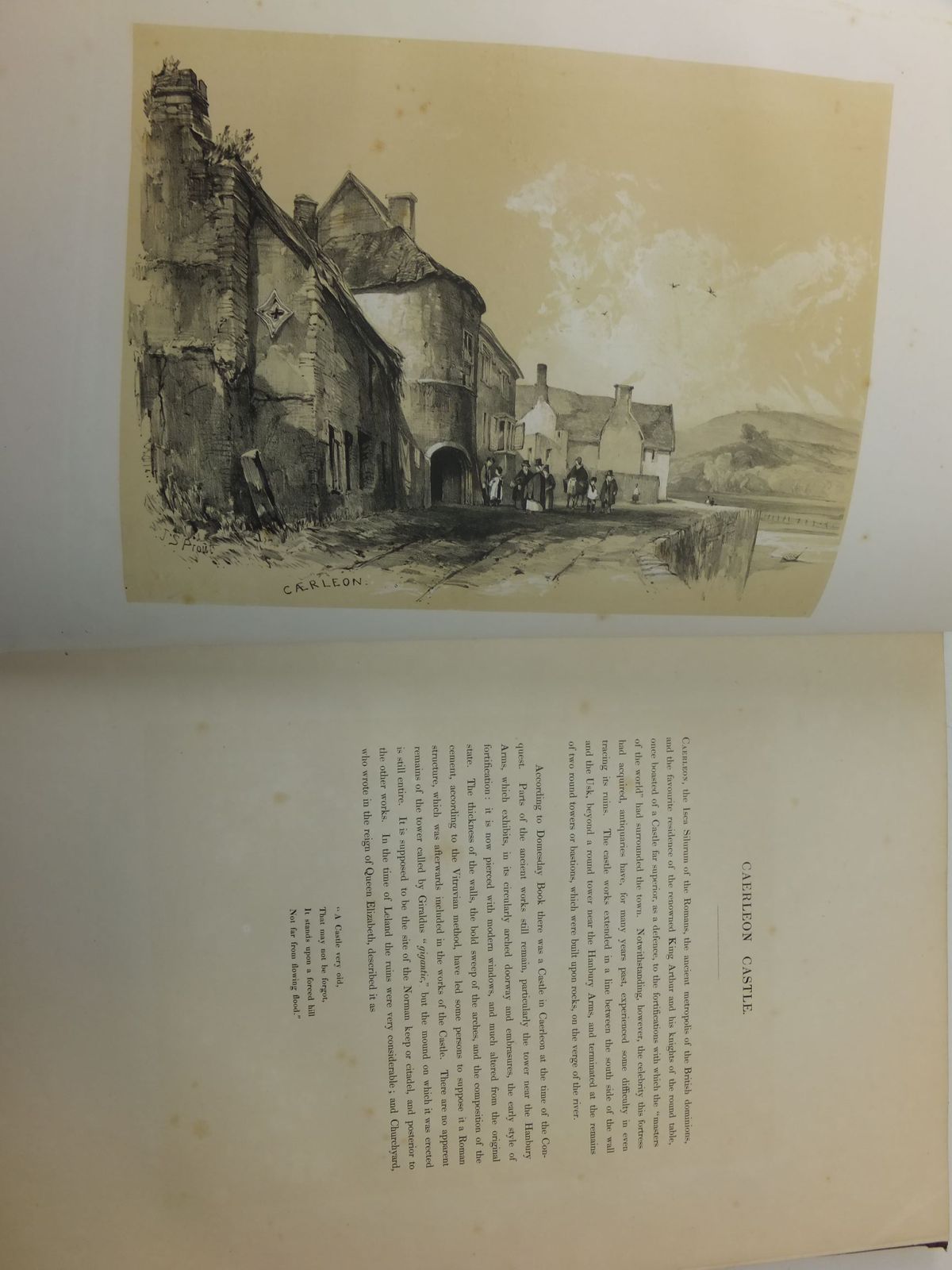 Very good condition. Large folio format. 22 x 15 inches. Red leather spine and corners. Gilt title to spine. Green cloth covers. Contains 30 lithograph plates comprising: Tintern (4), Llangibby, Chepstow (4), Raglan (3), Monmouth, Goodrich (2), Grosmont, Skenfrith, Whitecastle, Llantony Abbey (3), Usk (2), Caerleon, Newport, Pen Y Coed, Penhow, Striguil, Llanvair & Caldicot. Believed to be only 100 copies printed. Due to the size of this book, if posted, it will need to be sent via courier and may incur extra shipping costs.