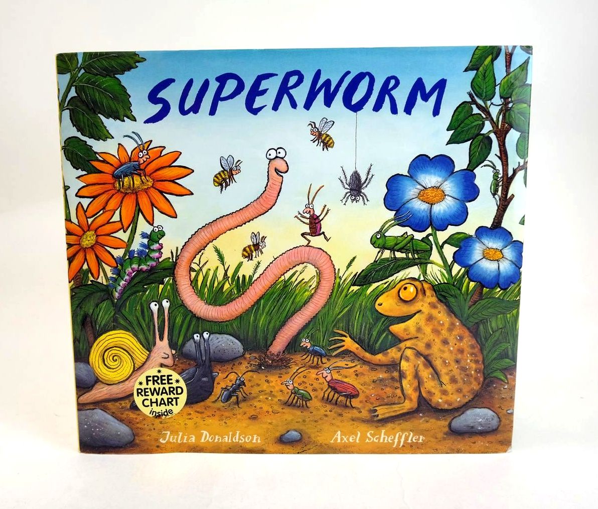 Who will rescue Superworm when he falls prey to a wicked Wizard Lizard? Large oblong format Glazed pictorial boards. Colour illustrations. ISBN: 9781407132044. Minimal bumping to corners. Tinypatch of surface paper damage to rear pastedown. A super copy contained in a dustwrapper which is slightly edge creased and a little worn at corners. Dustwrapper has a stick to front panel stating "Free Reward Chart Inside" but this chart is NOT present.