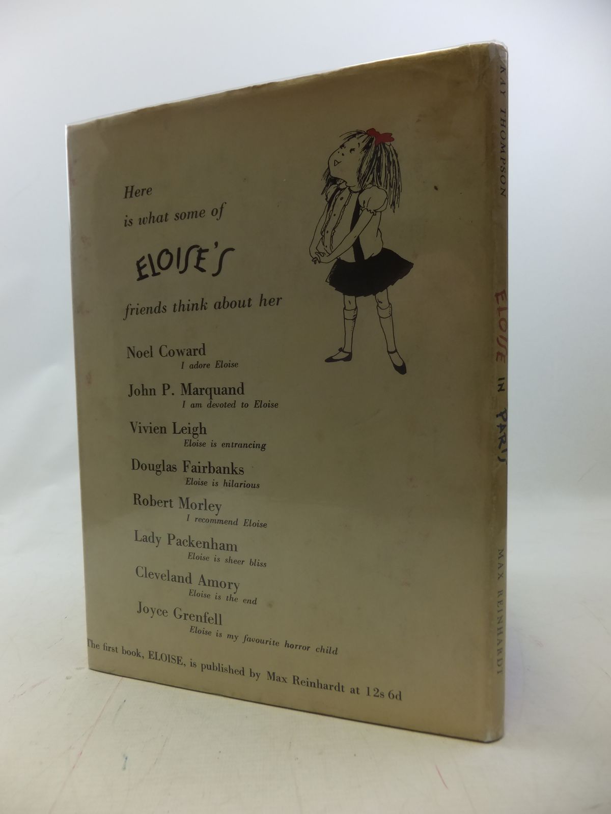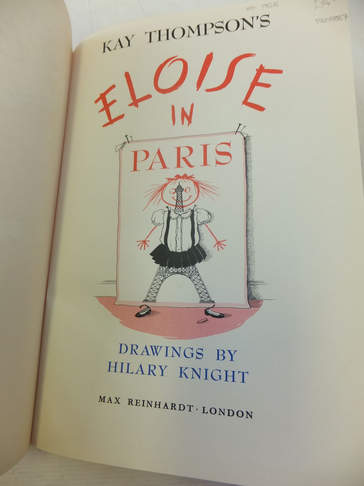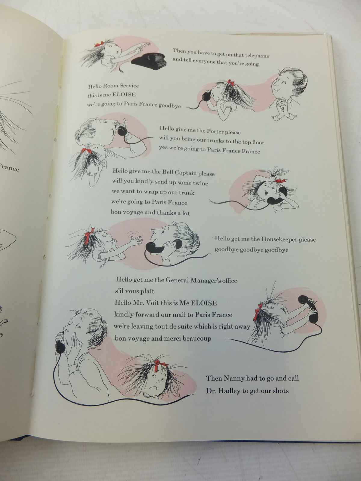 Slightly better than very good condition in a very good dustwrapper. Paris has just been discovered by Eloise the little girl from the Plaza... Here is what Eloise does in Paris: everything. The effect is rawther extraordinaire. If you come to Paris with Eloise you will always by glad you did. Large format. Blue boards with gilt titles. Pictorial endpapers. Colour illustrations to text throughout.