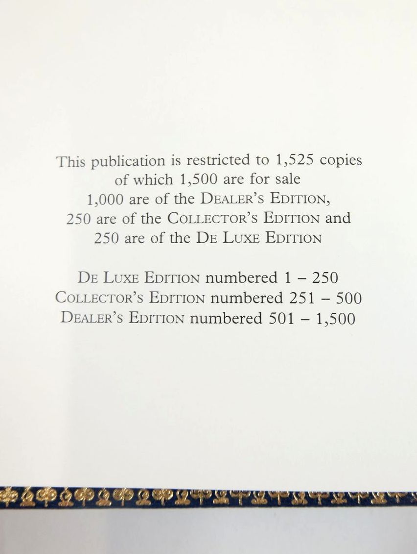 Slightly better than very good condition. Together with a Review of Fine Books and Other Collectable Ephemera. Title to spine is 'Sir William Russell Flint R.A. A Catalogue Raisonne vol II'. This is the De Luxe Edition, limited to 1,525 copies of which 1,500 are for sale nos 1-250 are De Luxe. Large format. Blue leather binding, gilt title to spine, vignette to front. All edges gilt. Marbled endpapers. Colour & b/w illustrations.