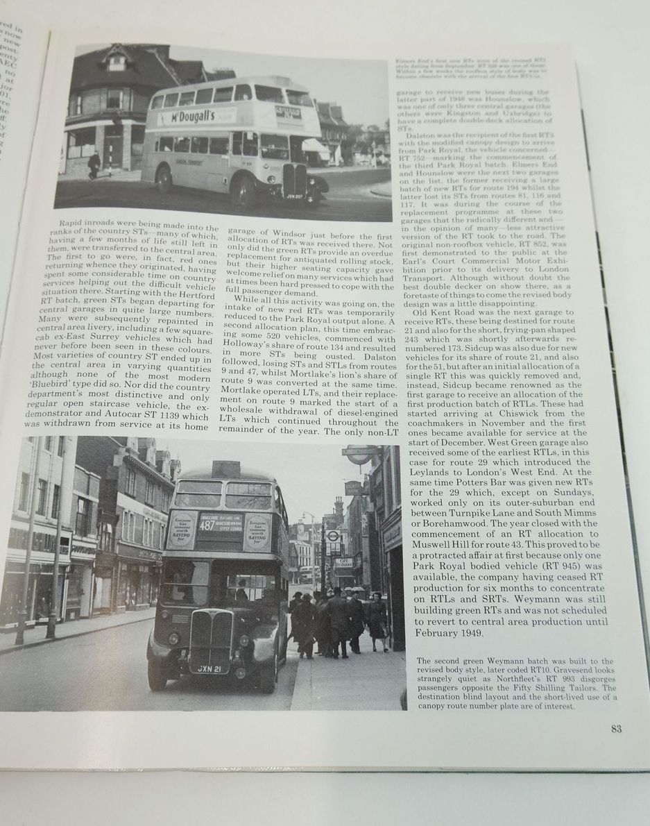 Very good condition in a very good dustwrapper. Second Edition. The history of the RT bus and its variants up to the day in April 1979 when the last one ran in passenger service for London Transport. Matt pictorial boards. Large format. B/w photos. 280 Pages.