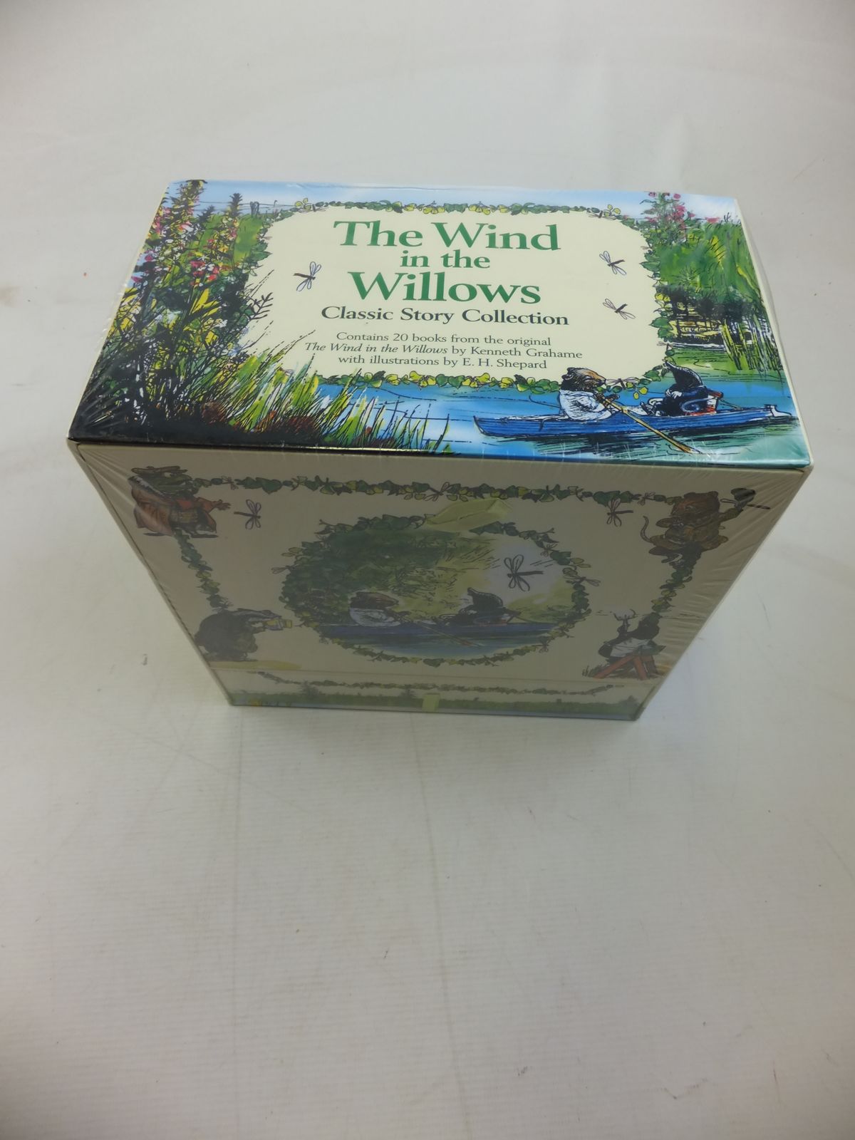 Fine condition. Contains 20 books from the original The Wind In The Willows by Grahame. In beautiful pictorial case, with drawer underneath.