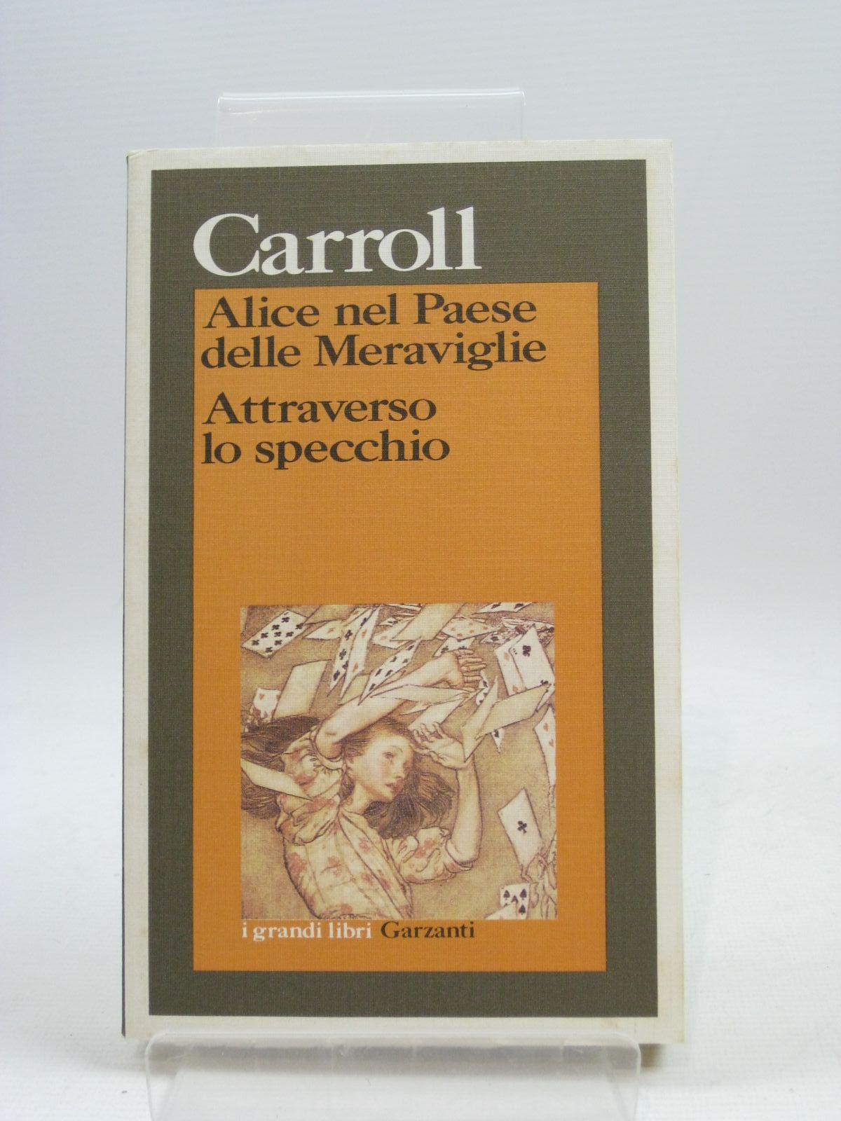 Almost very good condition. Italian translation of Alice In Wonderland and Through the Looking-Glass. Brown and orange card wraps, Alice with cards to front cover. B/w illustrations. 313 pages.