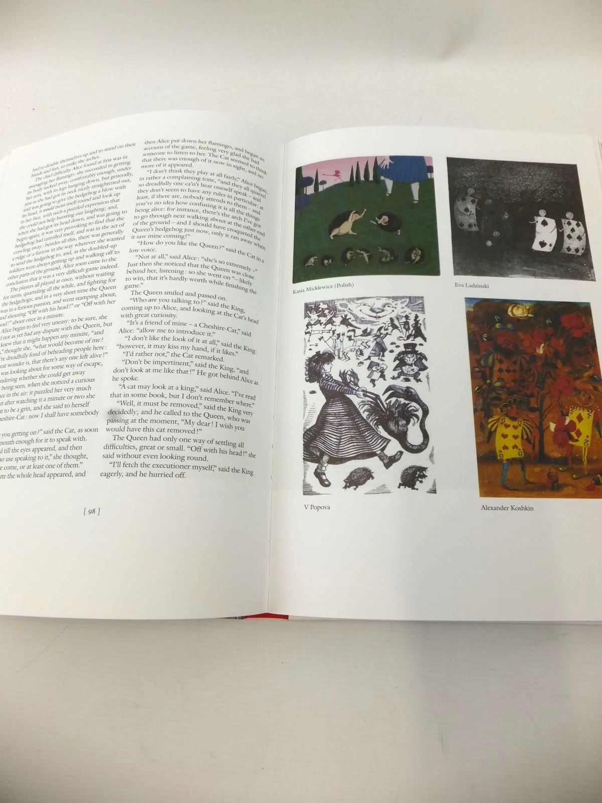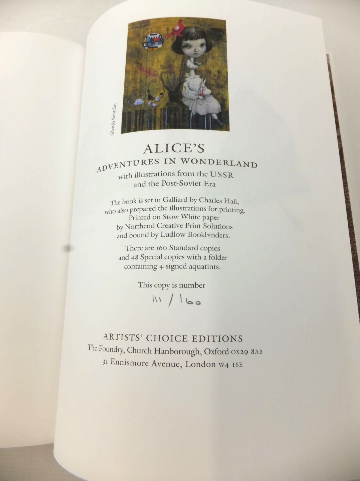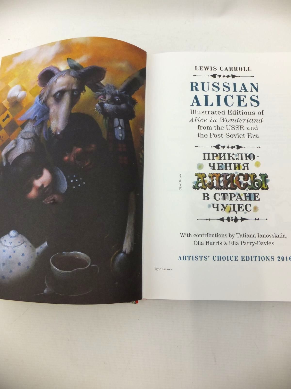 Fine condition. A first exploration of the wonderful selection of Russian and Ukrainian illustrated editions of Alice in Wonderland. Limited Edition of 160 Standard copies. Large format. Red cloth spine with white title, pictorial paper boards and endpapers. Beautiful colour illustrations throughout. 171 numbered pages.