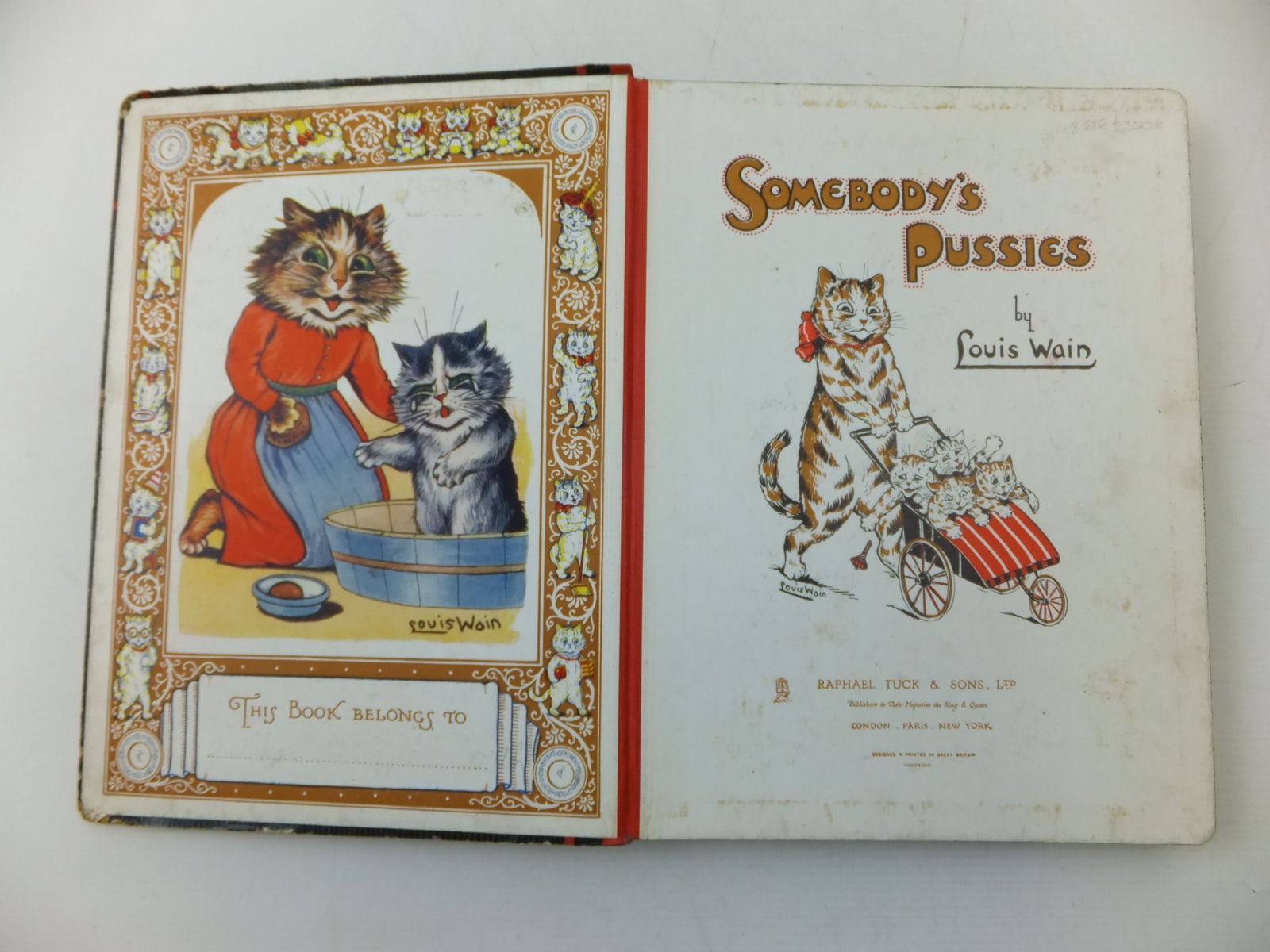 Bumping and wear to spine, corners and cover edges. Repaired split to base of spine. Some chipping to cover edges and a little scuffing. Name to belongs to box has been erased (pencil name). Some grubby marks - most noticeable to text pages and cloth joins. Illustrations are lovely and bright! A beautiful book for any Louis Wain fan.