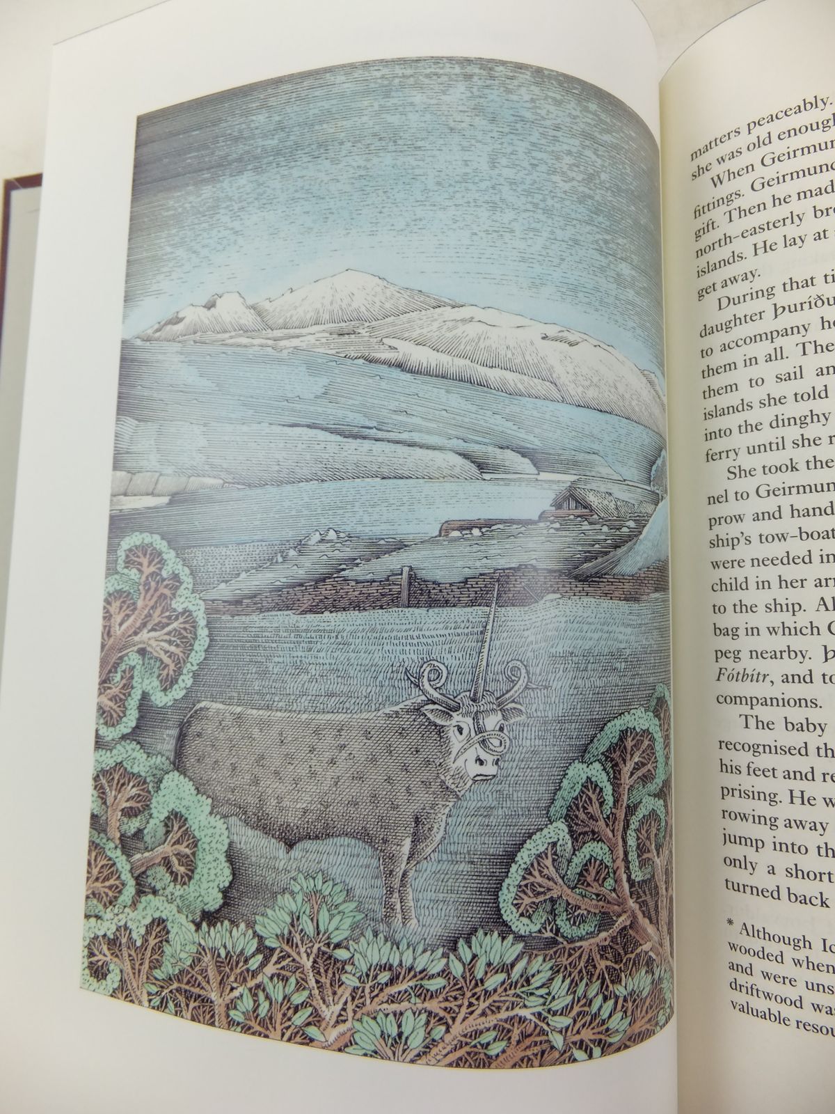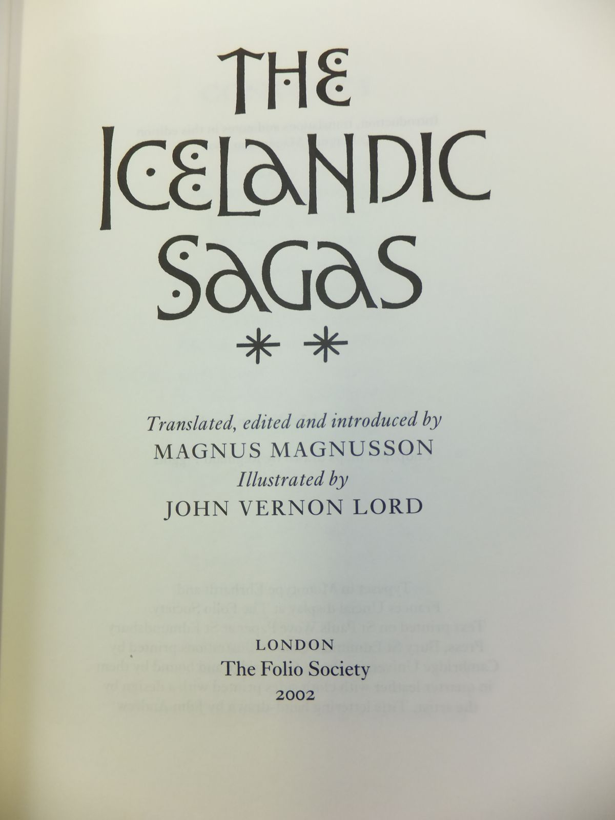 Fine condition. Volume II. Navy blue leather spine with gilt title. Cloth sides printed with a dramatic landscape design. 10 sagas. Colour plates.