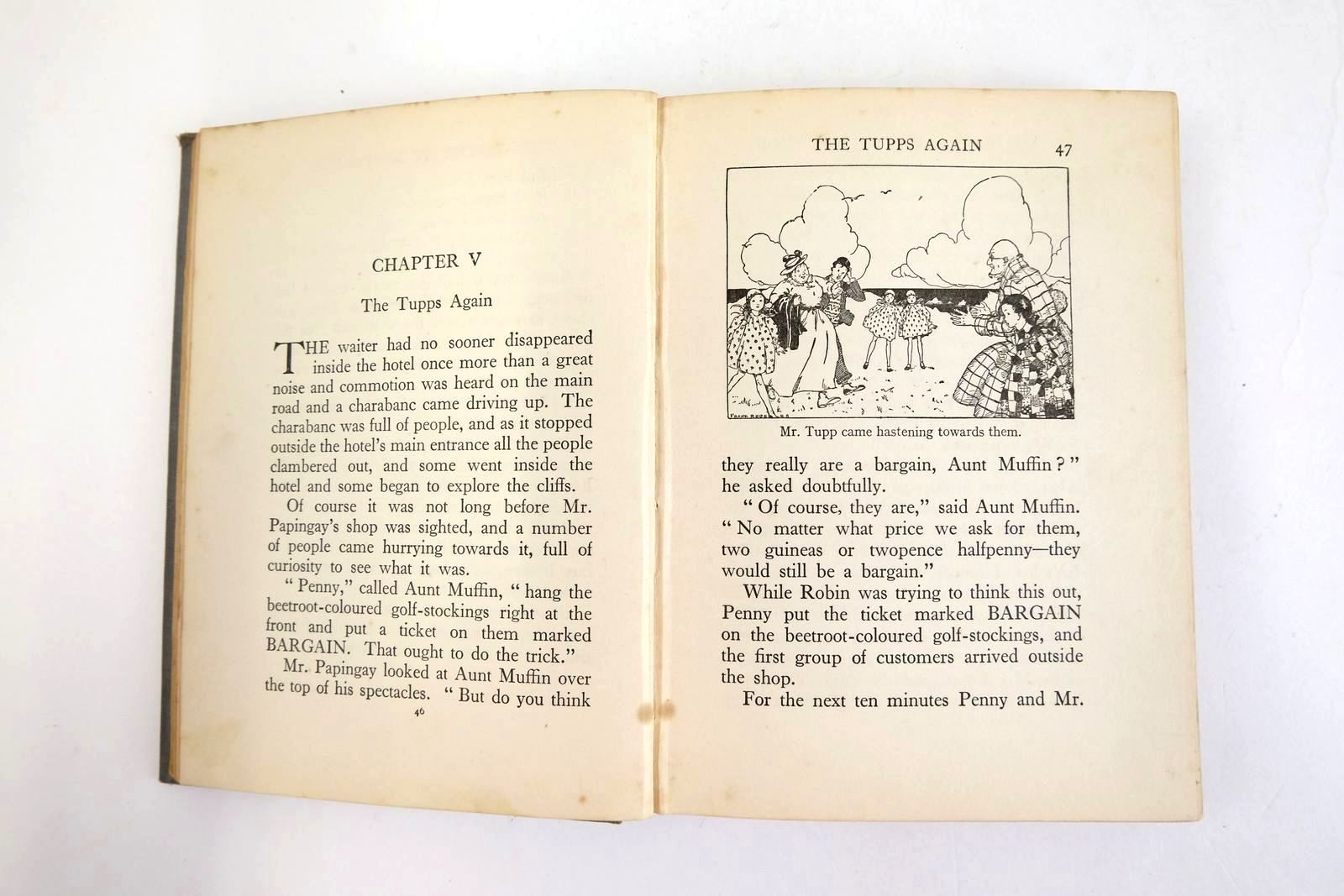Spine and corners bumped and slightly rubbed. Covers grubby. Endpapers browned. Old tape marks to front pastedown. Some neat ink writing to front free-endpaper (Francis Holland School Juniors Fiction Library E.47). Some grubby marks to contents. Unfortunately the colour frontis is MISSING from this copy.