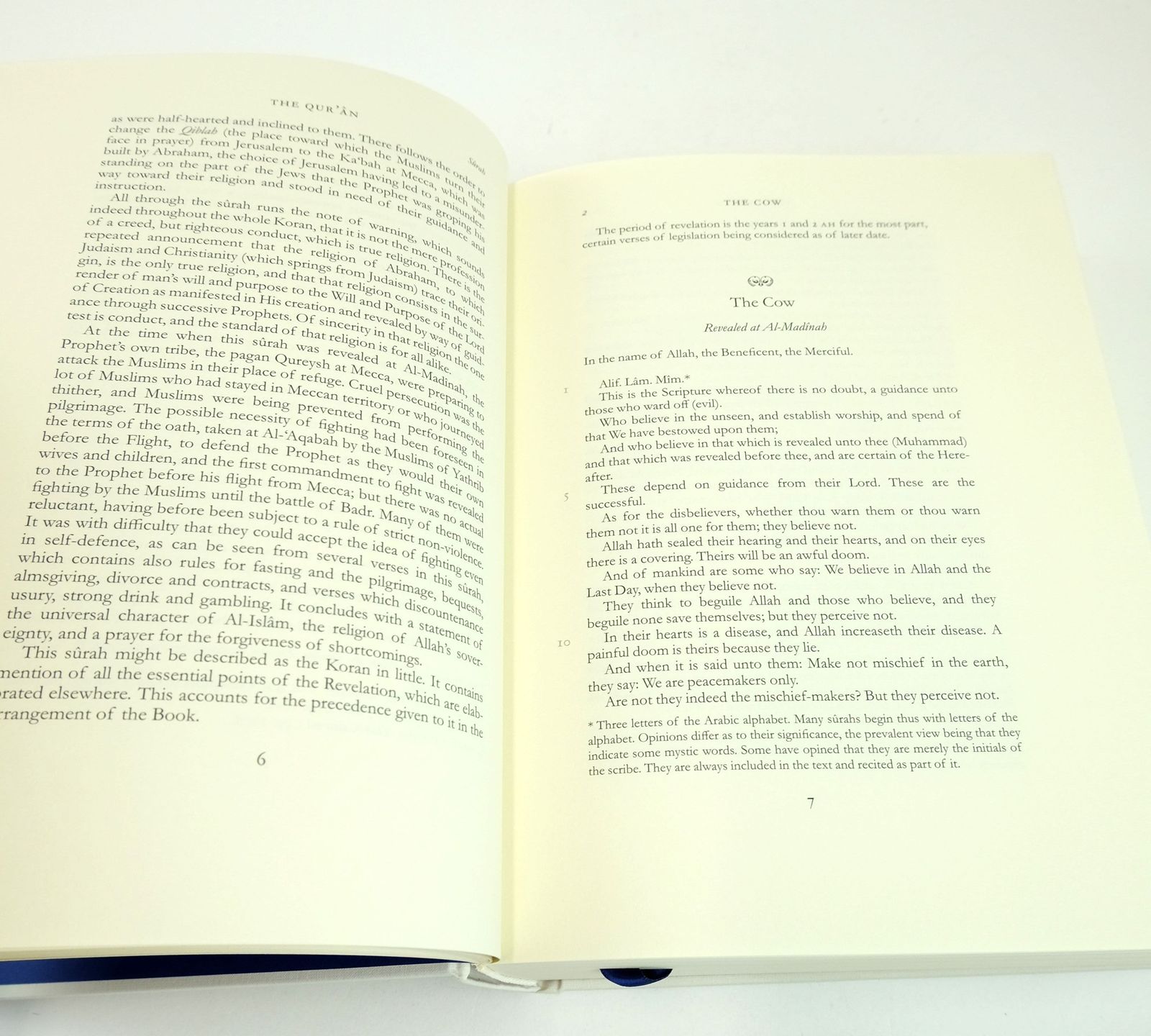 Fine condition. An interpretation by Marmaduke Pickthall. White cloth with blue and gilt blocking. Blue ribbon page marker. Colour plates. Top edge gilt. xxvii and 515 pages.