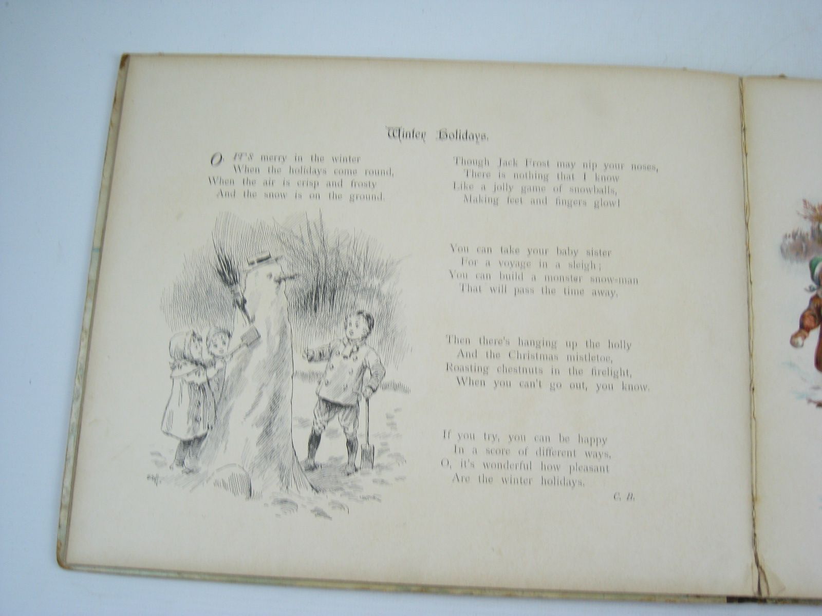 Almost very good condition. A Book for the Children's Playtime. Large, oblong format. Brown cloth spine, pictorial front board. Floral decorated endpapers. 16 full-page chromo illustrations plus b/w text illustrations.