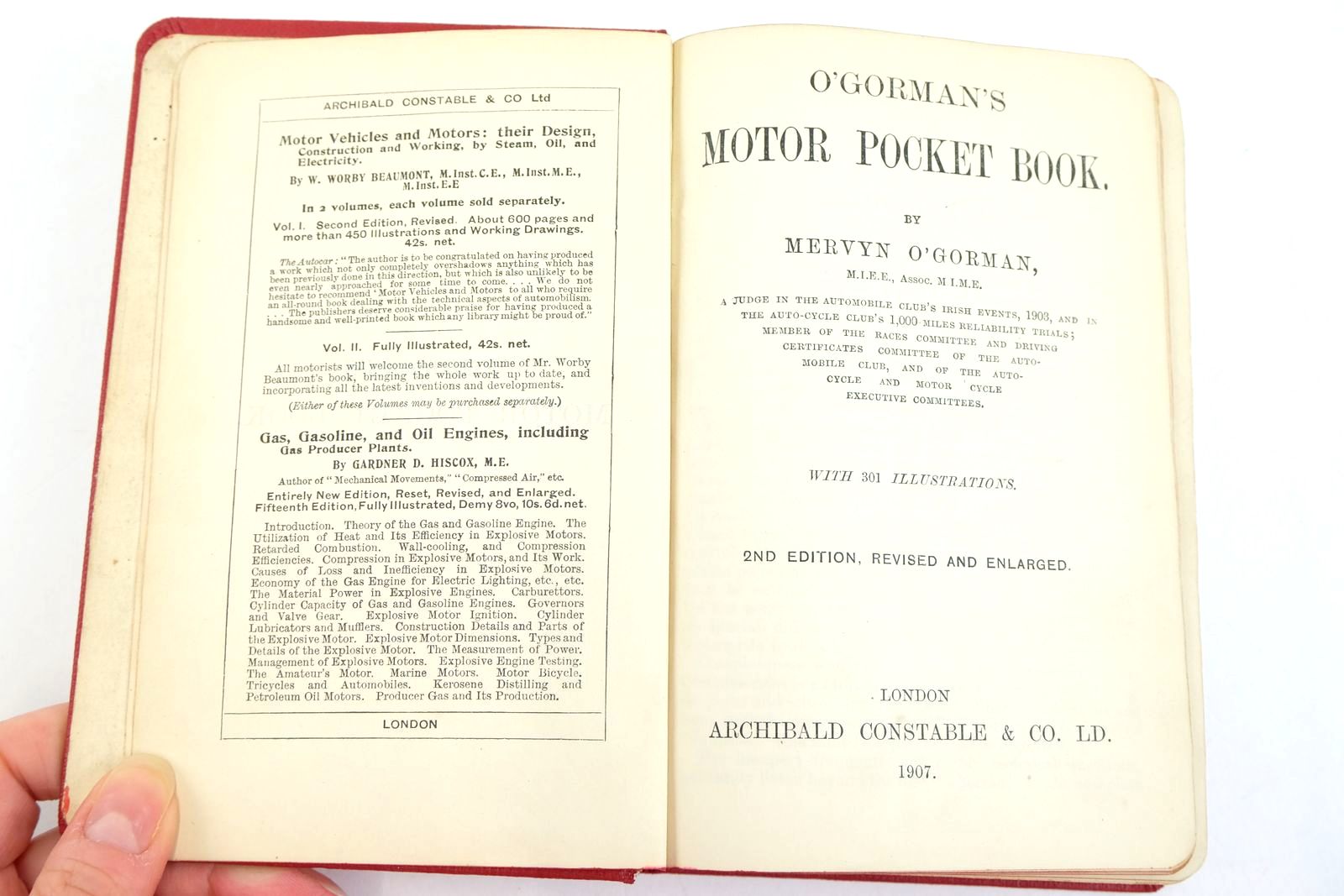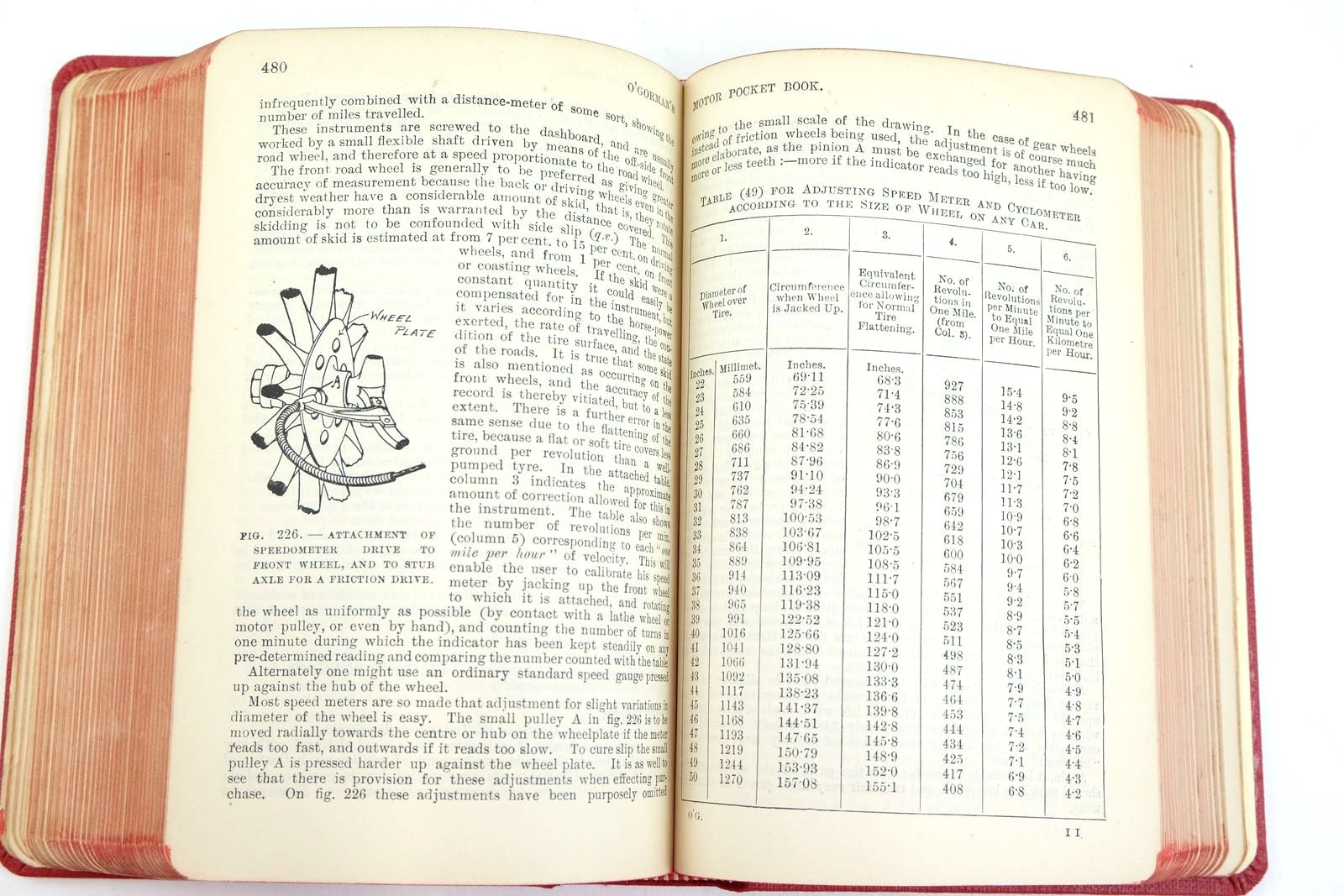 Almost very good condition. 2nd edition, revised and enlarged. The author was a judge in the Automobile Club's Irish events, 1903 and in the auto-cycle Club's 1,000 miles reliability trials; member of the races committee and driving mobile club, and of the auto-cycle and motor cycle executive committees. Red cloth boards, gilt titles. 301 b/w illustrations. All edges red. ix and 725 pages including index.