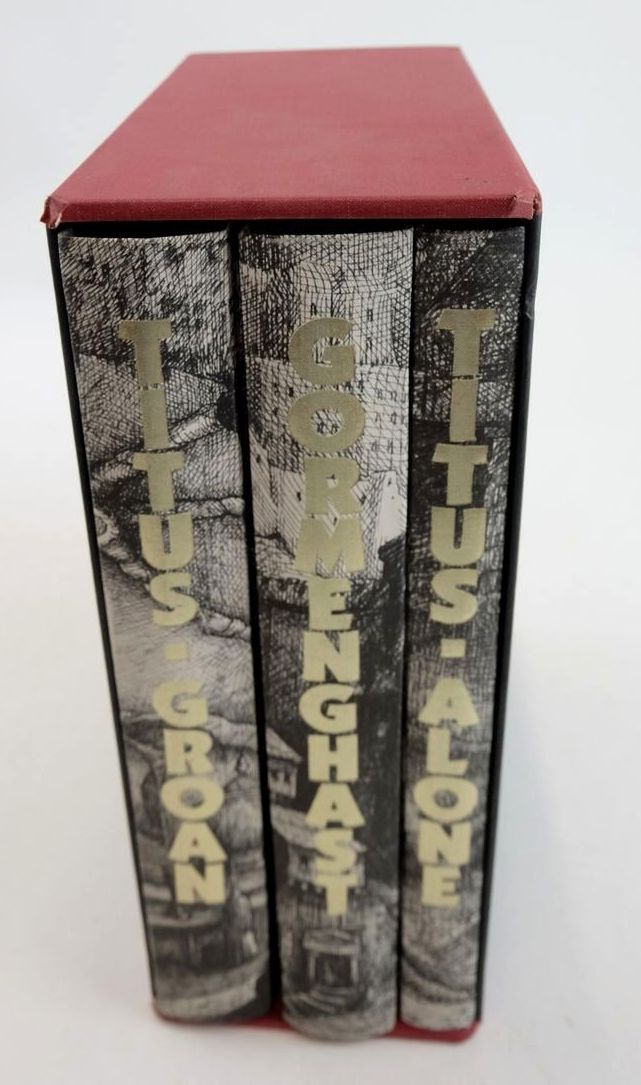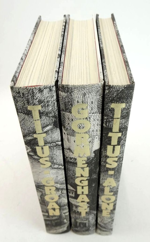 Slightly better than very good condition. Introduction by Michael Moorcock. Contains Titus Groan, Gormenghast, and Titus Alone. All volumes have gilt titles to spines; b/w illustrated covers. B/w illustrations.