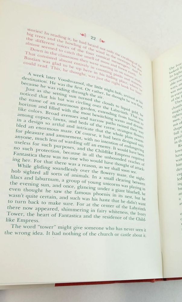Almost very good condition in a very good dustwrapper. First published in German in 1979. Red cloth, gilt title to spine. Marble effect endpapers. Full-page illustration of the first letter of each chapter. Green and pink text. A wonderful fantasy story about a magical kingdom.