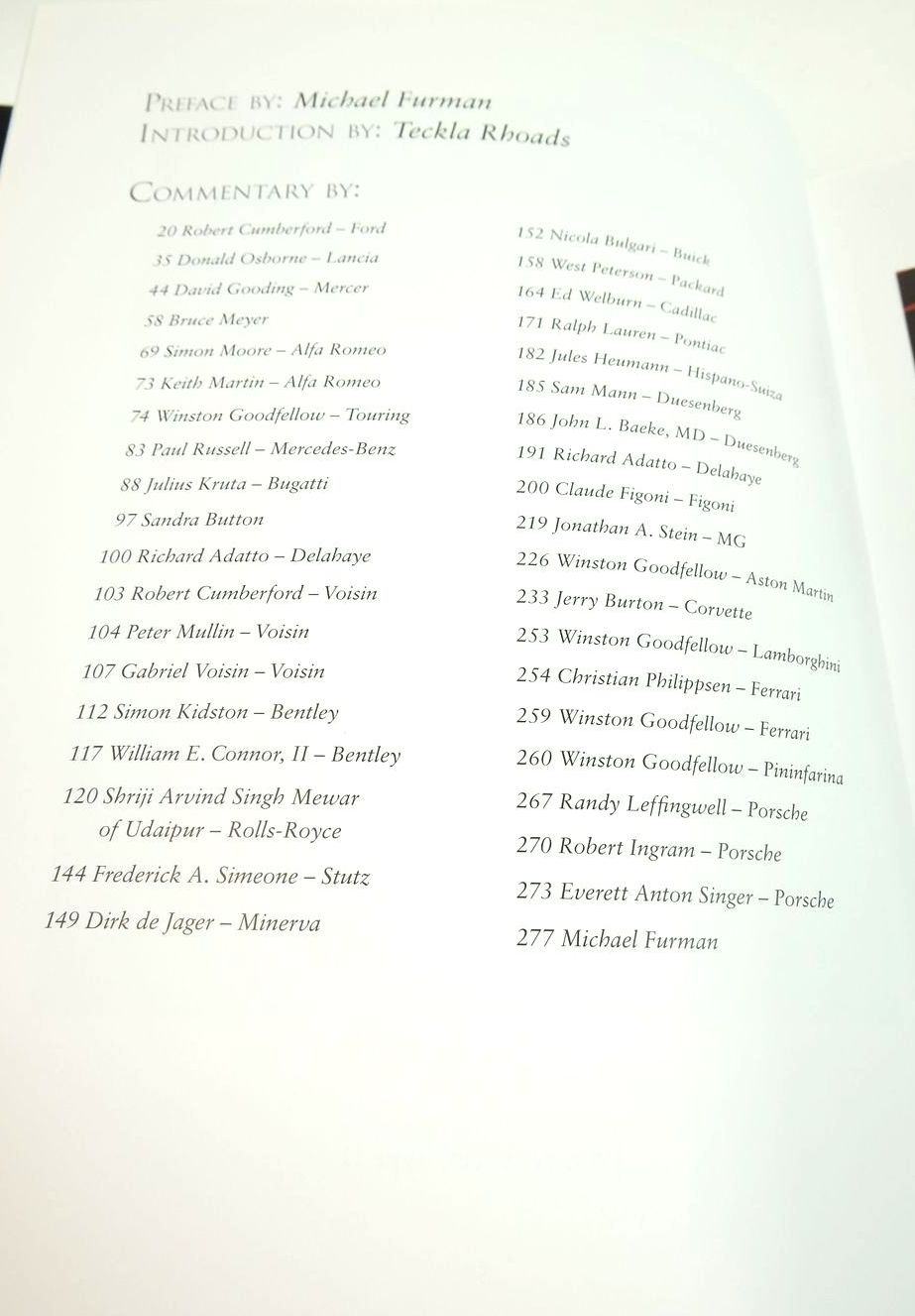 Fine condition. A celebration of the artistry and craftsmanship of the sculptural details of the world's most elegant vehicles. Representing more than twenty years of Michael Furman's efforts to photograph these iconic works of sculpture and design, in concert with comments by prominent figures in the automotive world. Large format. Black cloth boards with grey titles. Colour photos throughout. 287 pages including index.