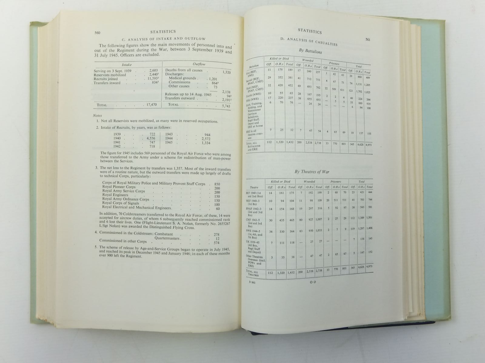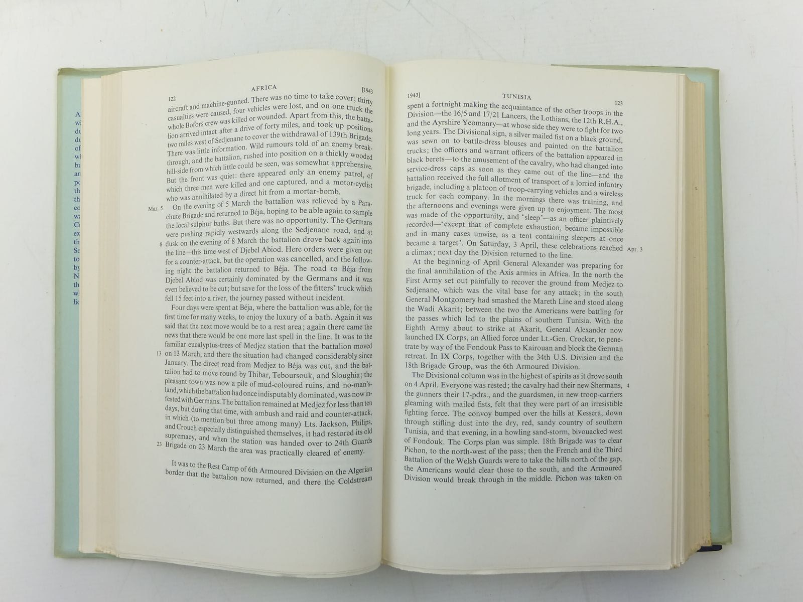 Nearly fine condition in a very good dustwrapper. The book deals with the experiences of the five fighting battalions: the first phase concerns the first and second battalions in the ten months up to Dunkirk; the second, the part played by the second and third battalions in North Africa and Italy; the third embraces the fighting in Europe from June 1944 in which the 1st, 4th and 5th battalions took part. There is also an introductory retrospect concerning the regiment in the first world war. Blue cloth, gilt and silver decorations. xvii + 593 pages. B/w maps.