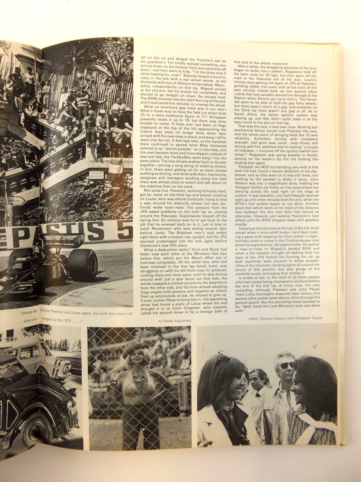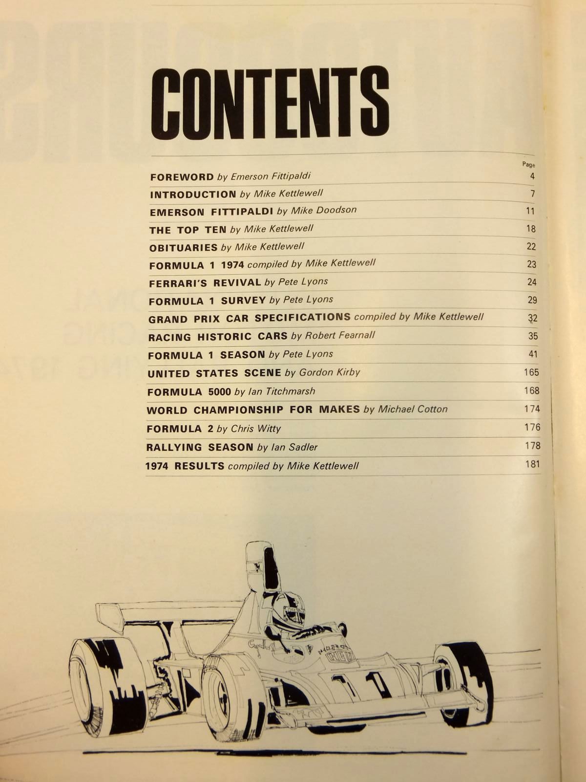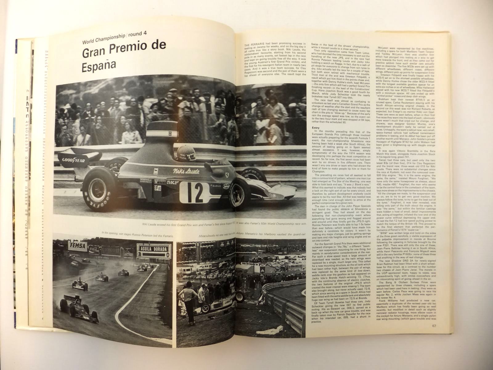 Very good condition in a very good dustwrapper. A detailed record of the 1974 season. Large format. Colour and b/w photos. Foreword by Emerson Fittipaldi.