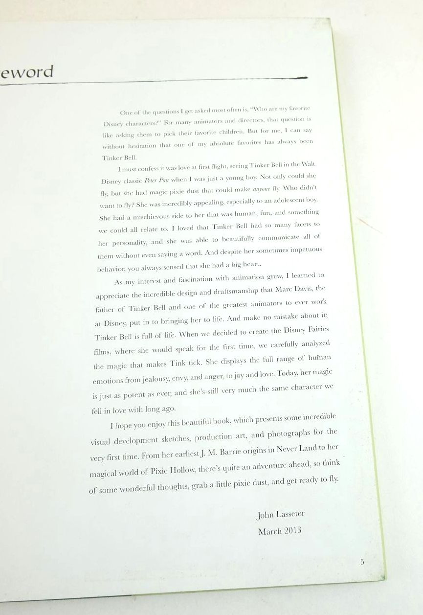 Very good condition in a good dustwrapper. Recounting the progression of Tink's every iteration, as she transitions from play to film to book and back again. A lavish and informative volume that is the ultimate proof that people around the world do believe in fairies. Large format. Green cloth, silver title to spine. Colour and b/w photos and illustrations throughout. Foreword by Lasseter.