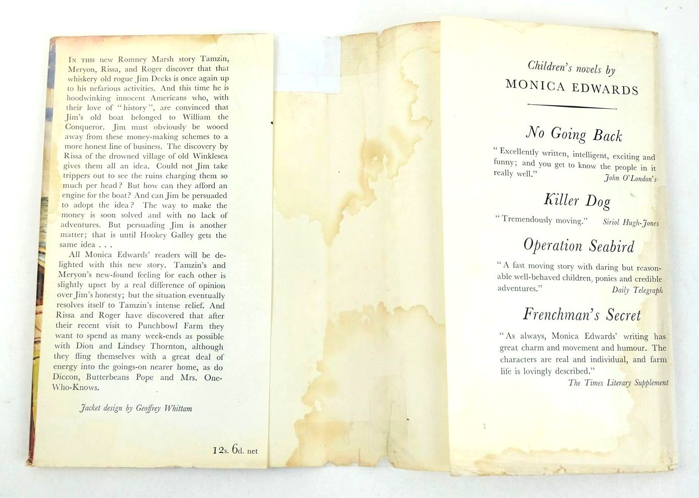 Almost very good condition in a good dustwrapper. "Jim Decks is once again up to his nefarious activities - hoodwinking innocent Americans who, with their love of history, are convinced that Jim's old boat belonged to William The Conqueror". Red boards, silver title to spine. Endpapers are maps of the Romney Marsh area, b/w illustrations to text. 192 pages.