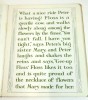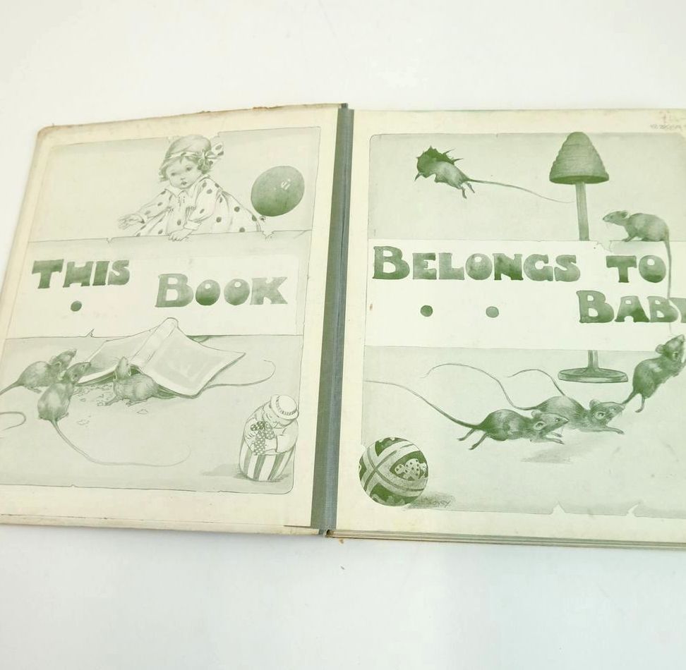 Almost very good condition. A board book for young children. Front cover shows young child in highchair wearing a blue gown and eating snacks, yellow background. Blue cloth spine. 12 colour illustrations with text below plus full pages of text. Text in green.