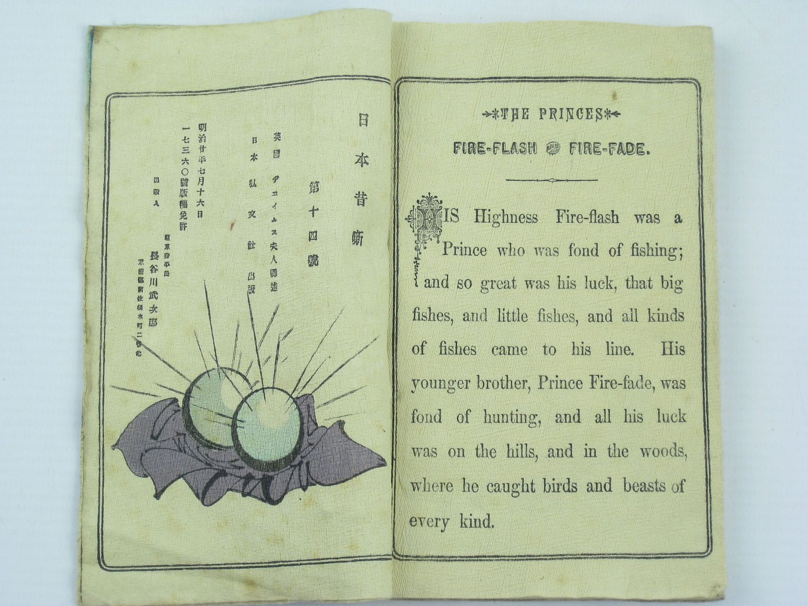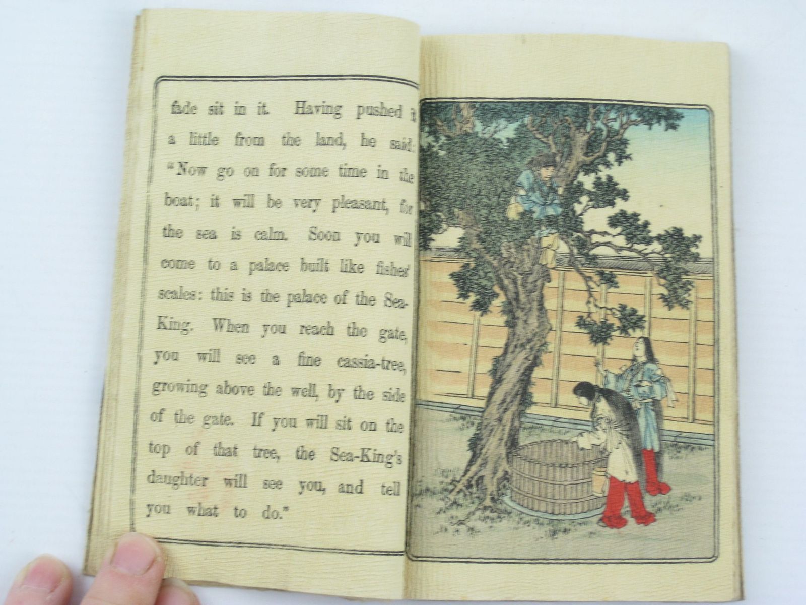 Very good condition. Japanese Fairy Tales Series No. 14. A crepe paper book. Small format. Colour illustrations throughout.