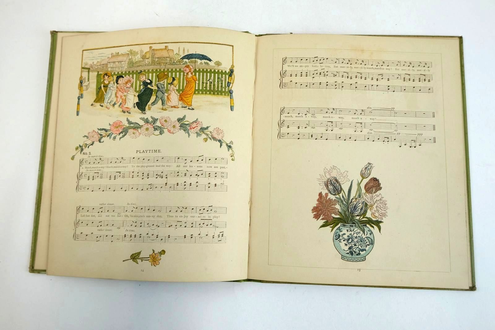 Very good condition. Songs for a child's day with music. Colour illustrations throughout. 10 x 8.5 ". Green and yellow pictorial paper boards. 29 pages.