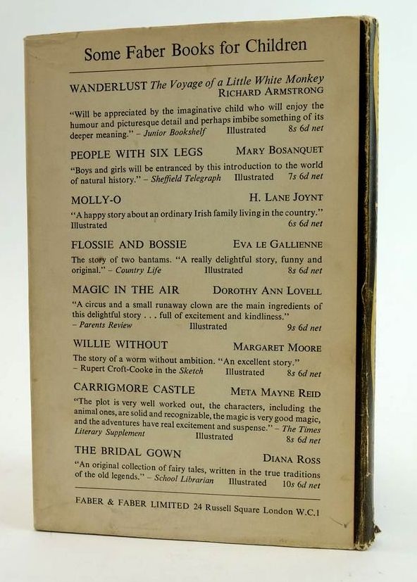 Ex-school library with just one school stamp to front endpaper. Piece of dustwrapper spine is stuck to base of cloth spine. Else boards nice and bright. Endpapers lightly browned. Minor foxing to top edge of text block. Contents nice and clean, one or two minor margin marks. Pictorial dustwrapper is edge-rubbed, chip to tail of spine (chip itself stuck to base of book spine), rear panel is browned. A nice copy overall.