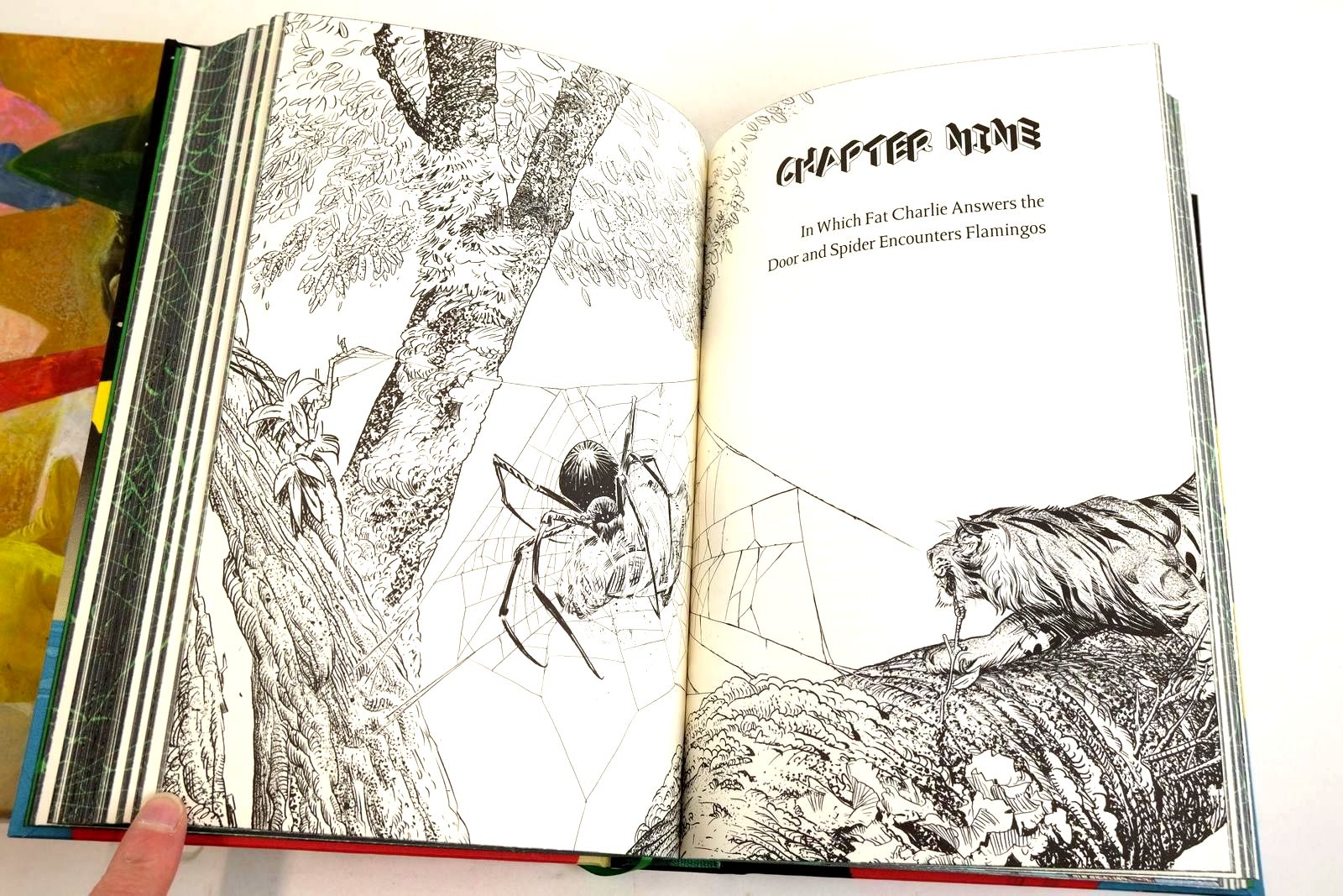 Nearly fine condition. A fantasy novel; "Mr. Nancy" — an incarnation of the West African trickster god Anansi — dies, leaving twin sons, who in turn discover one another's existence after being separated as young children. Introduced by Hopkinson. Pictorial cloth. Textblock is dyed black with green cobweb design. 356 pages. Green endpapers. Colour plates plus b/w illustrations.
